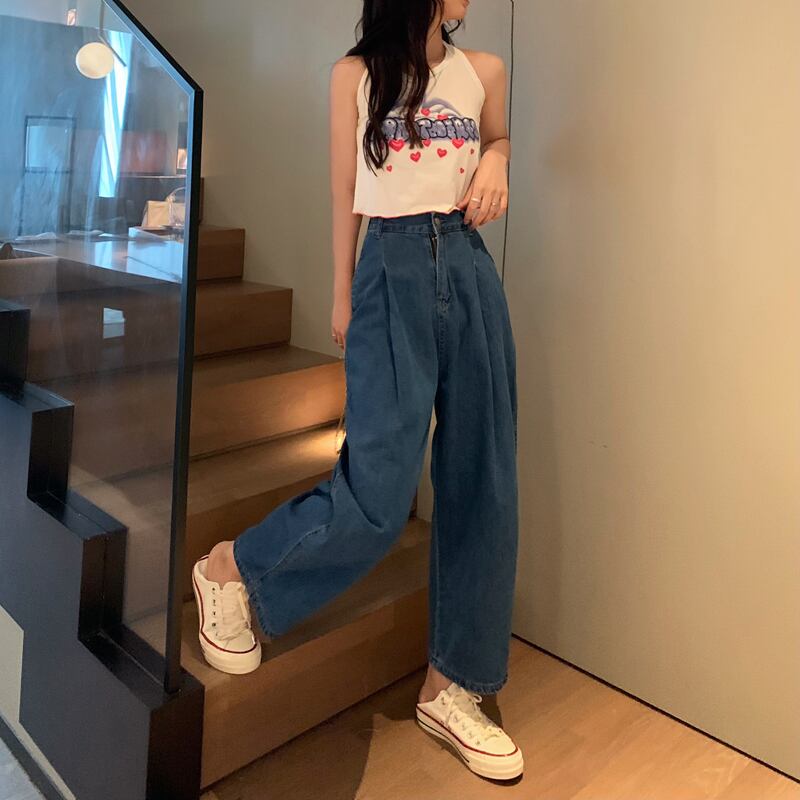 ブルージーンズ ルーズ夏服ハイウェストスリムスタイルスタンダードパンツ レトロ 夏物 ウエスト SYJ29953760663