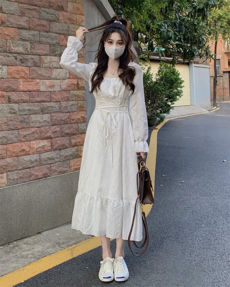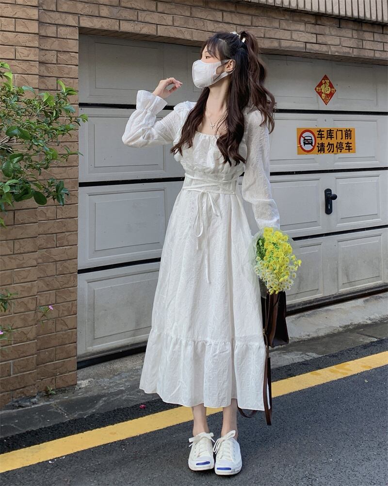 ワンピースレディーススプリングホワイトロングスカート 大人ガーリー スウィート キュート カジュアル 春物 SYJ75736791190