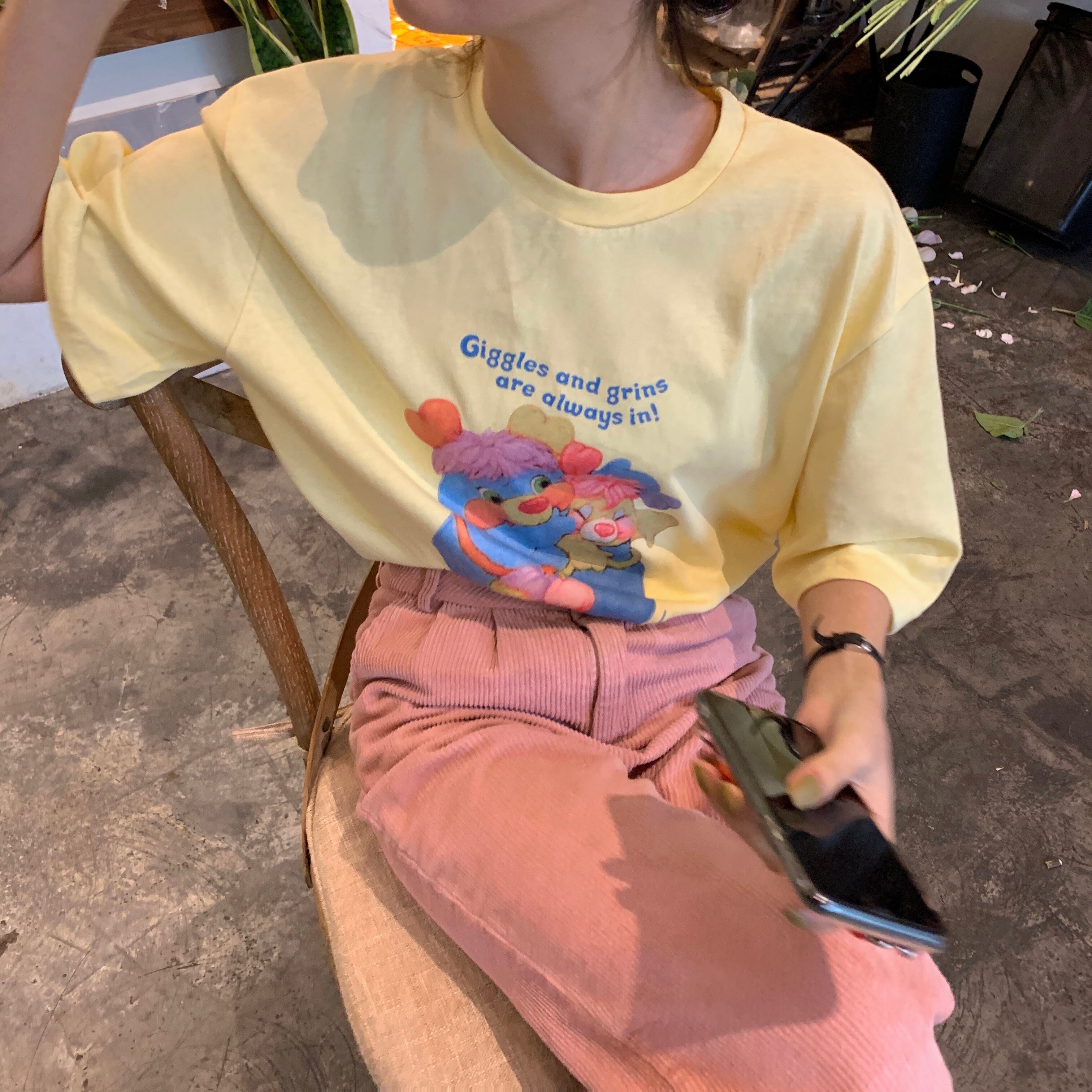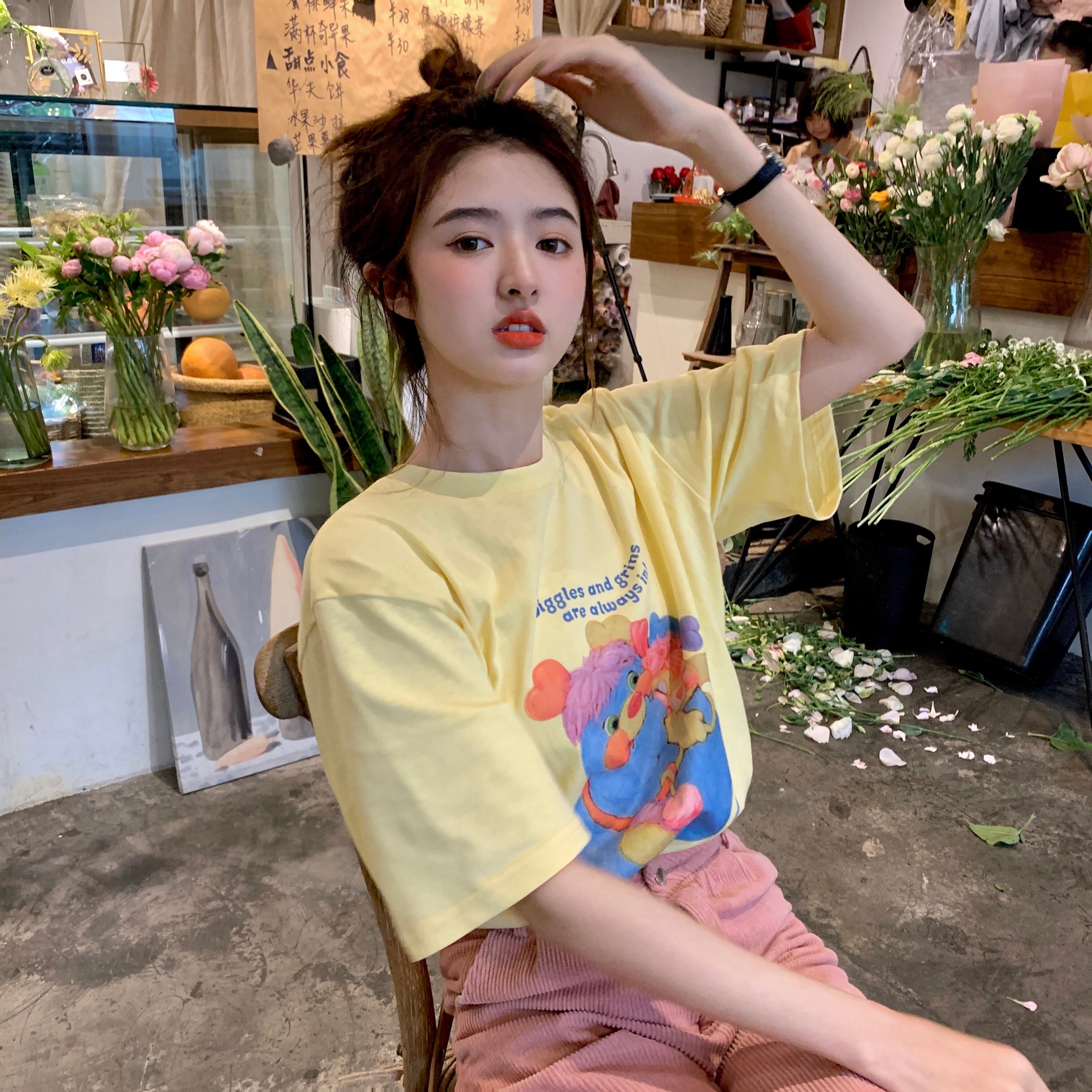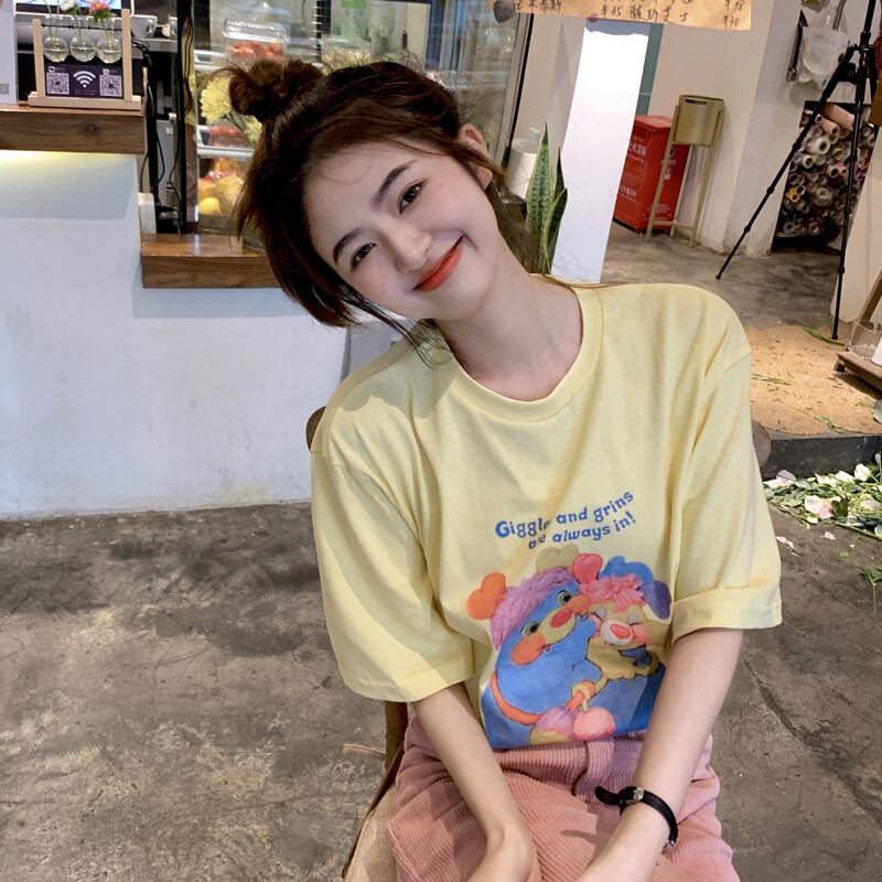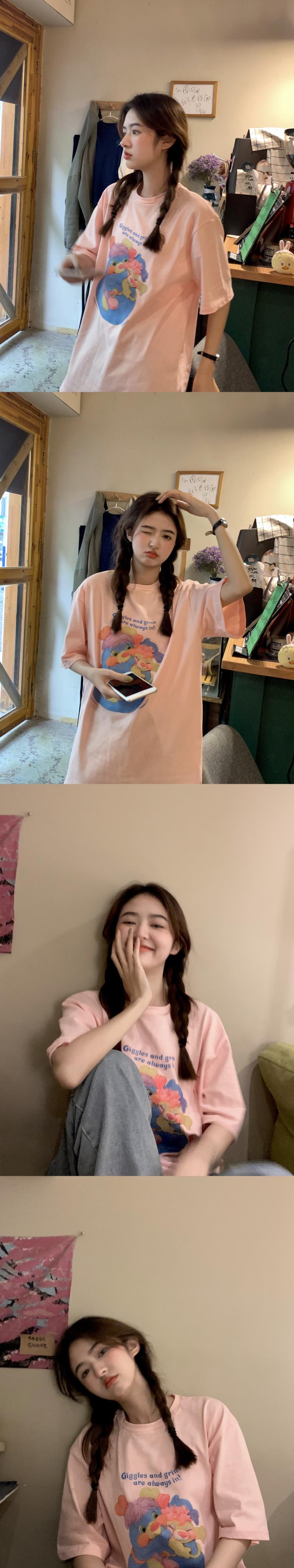 Tシャツ夏服韓国ファッションルーズトップス NEW ピンク コットン 大人ガーリー スウィート キュート カジュアル 夏物 SYJ63574290704