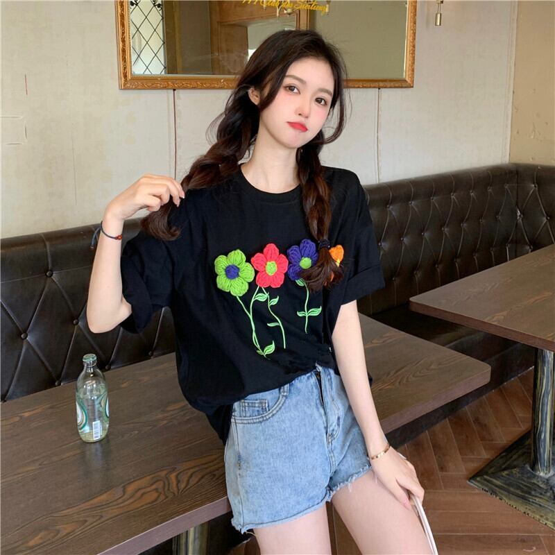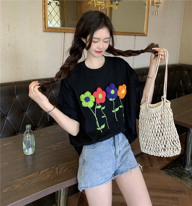 ブラックTシャツ夏服韓国ファッションルーズトップス NEW 夏物 スタイル SYJ90050654759