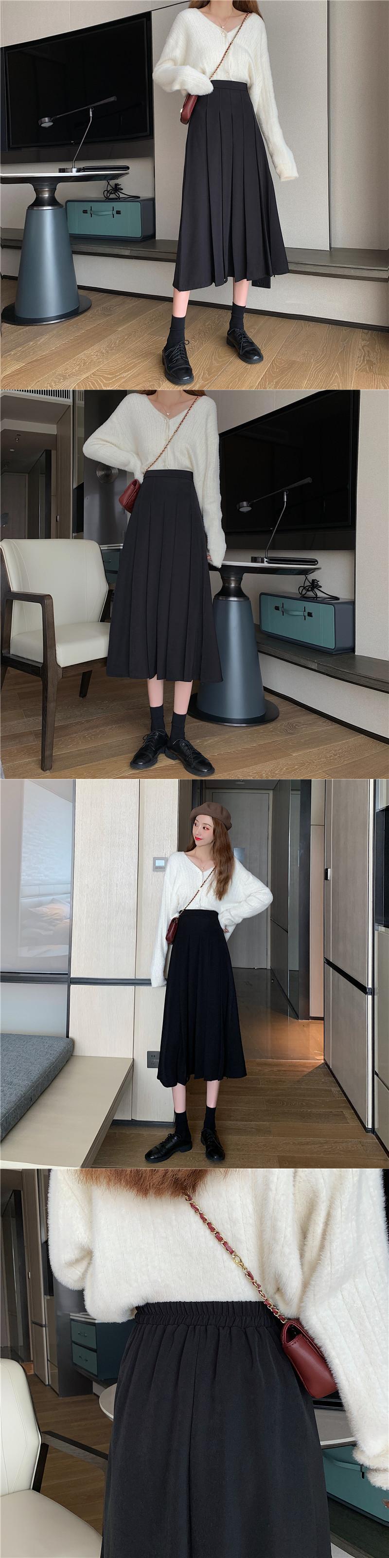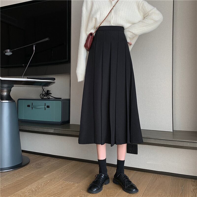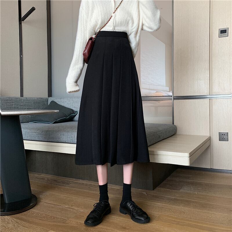 ブラックプリーツスカート スプリング秋物セーター ハイウェストウェストAラインロング 春物 オータム ウエスト SYJ70621714197