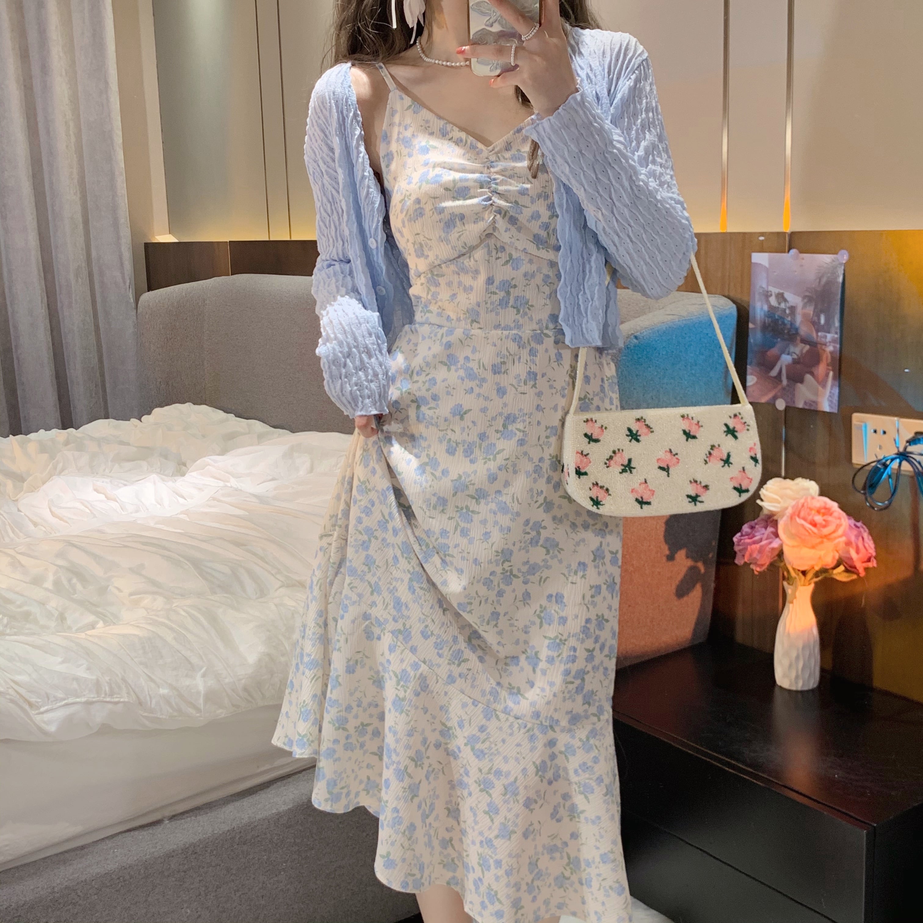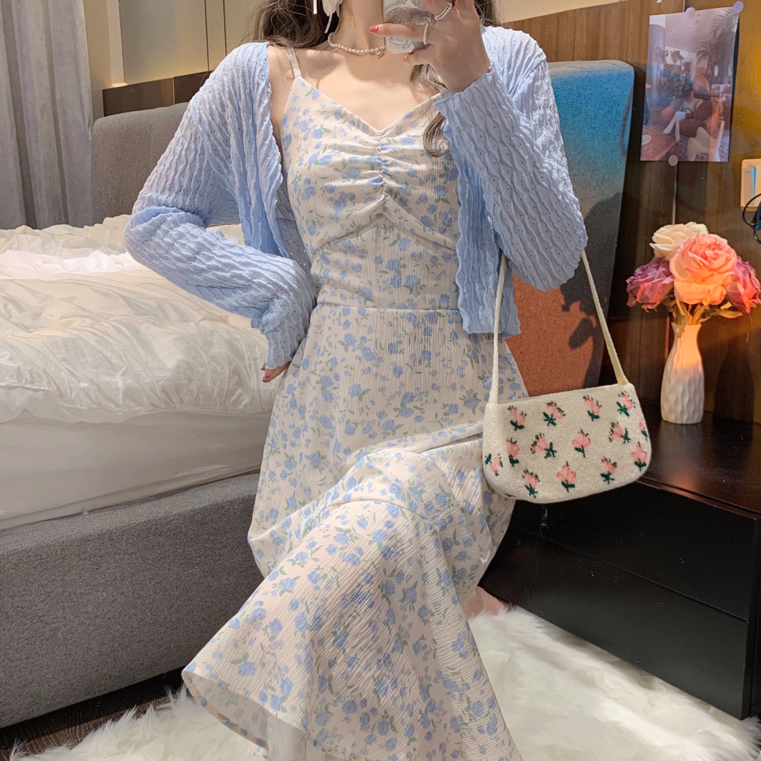 色:ピンクのワンピース,青いドレスワンピース,ホワイトカーディガンワンピース,ブルーカーディガンワンピース
