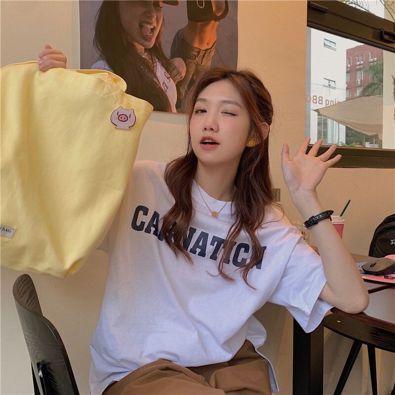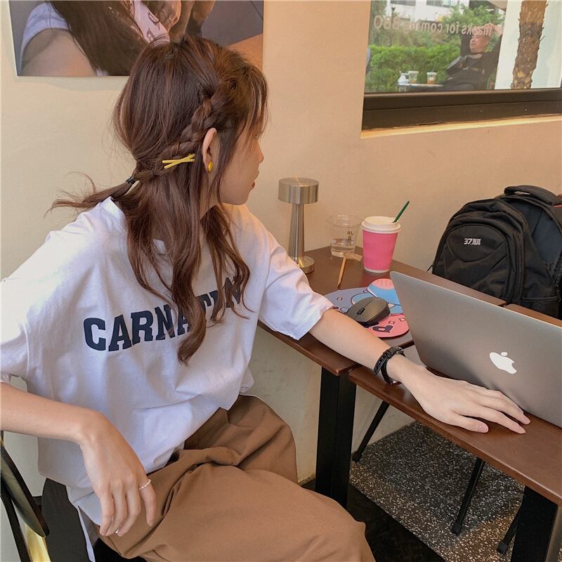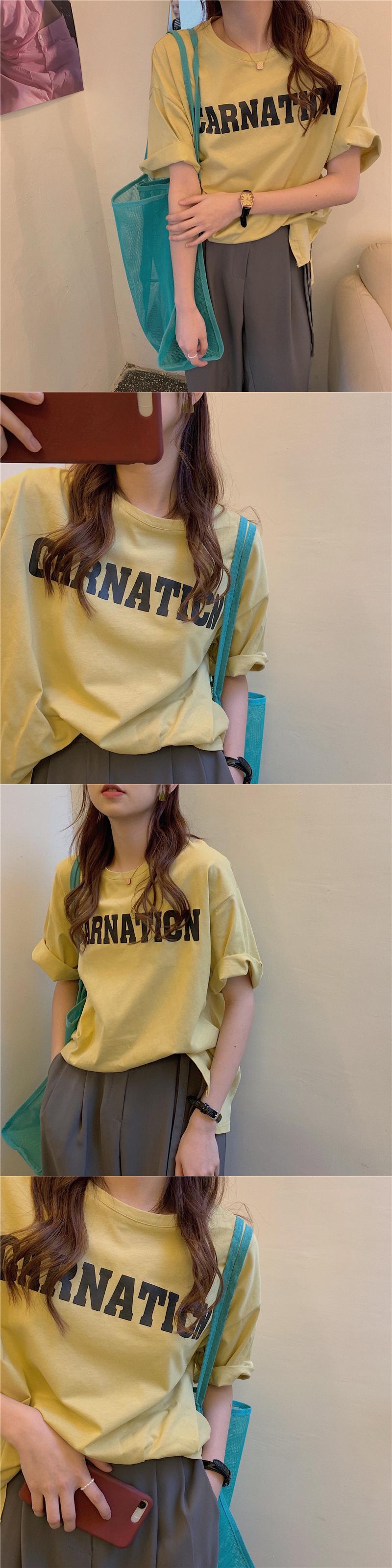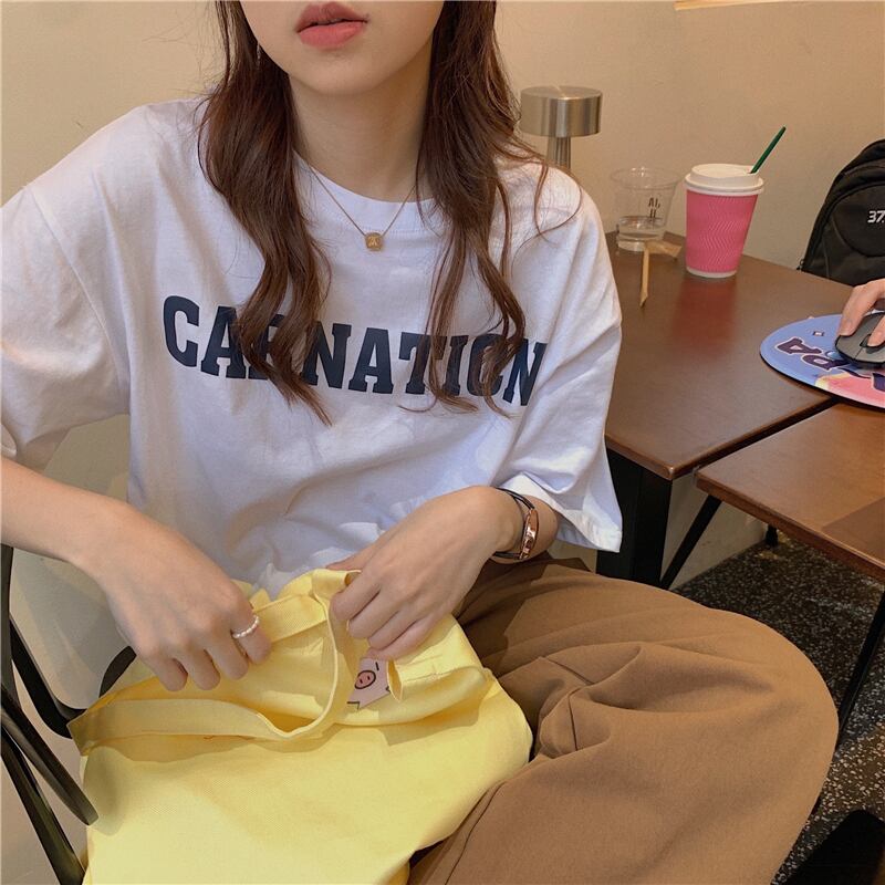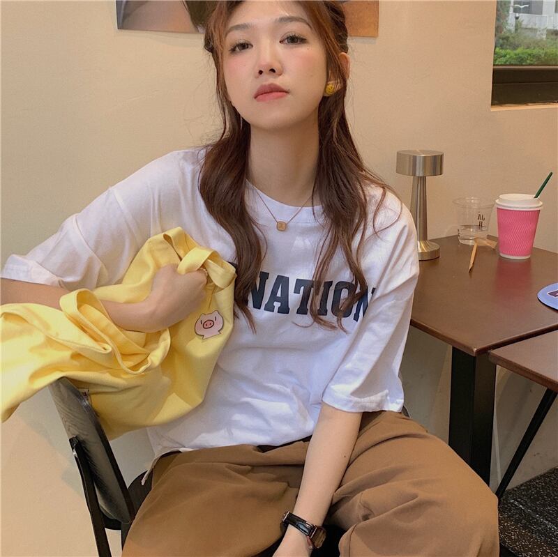 イエローTシャツ夏服ルーズラウンドネックトップス NEW 夏物 Oネック SYJ7663612039