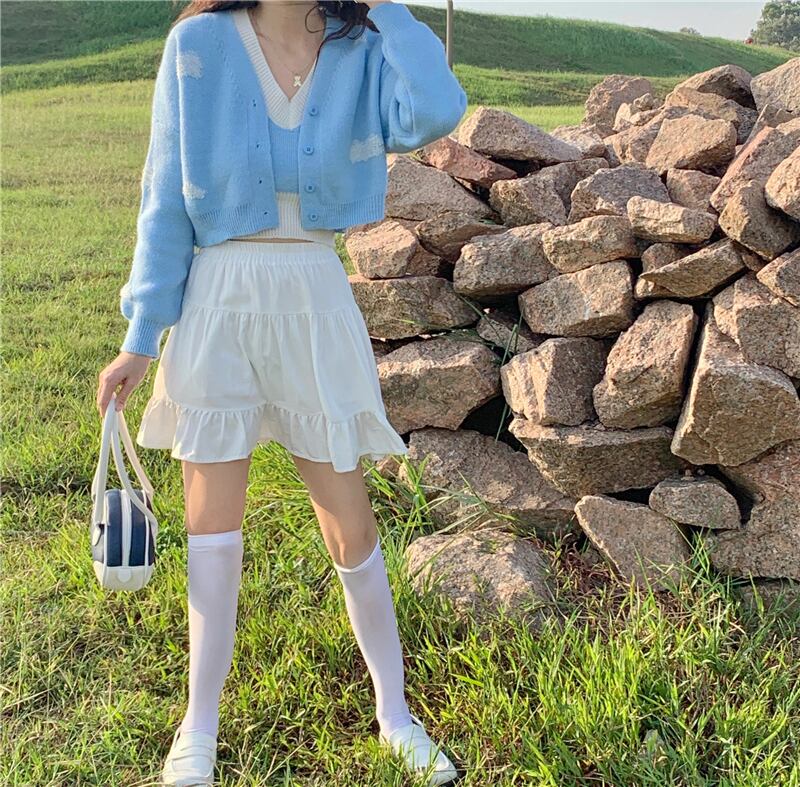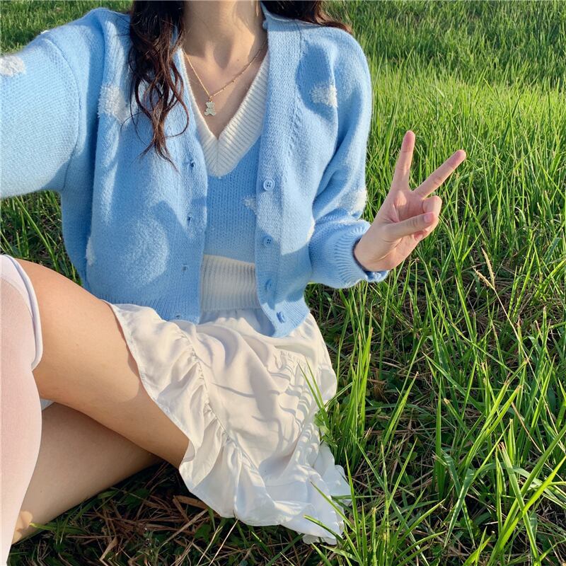 ブルーセーター コート スプリングスタイルショートニットカーディガン 大人ガーリー スウィート キュート カジュアル 春物 SYJ20517375697