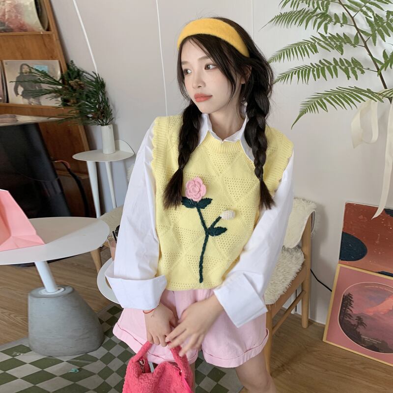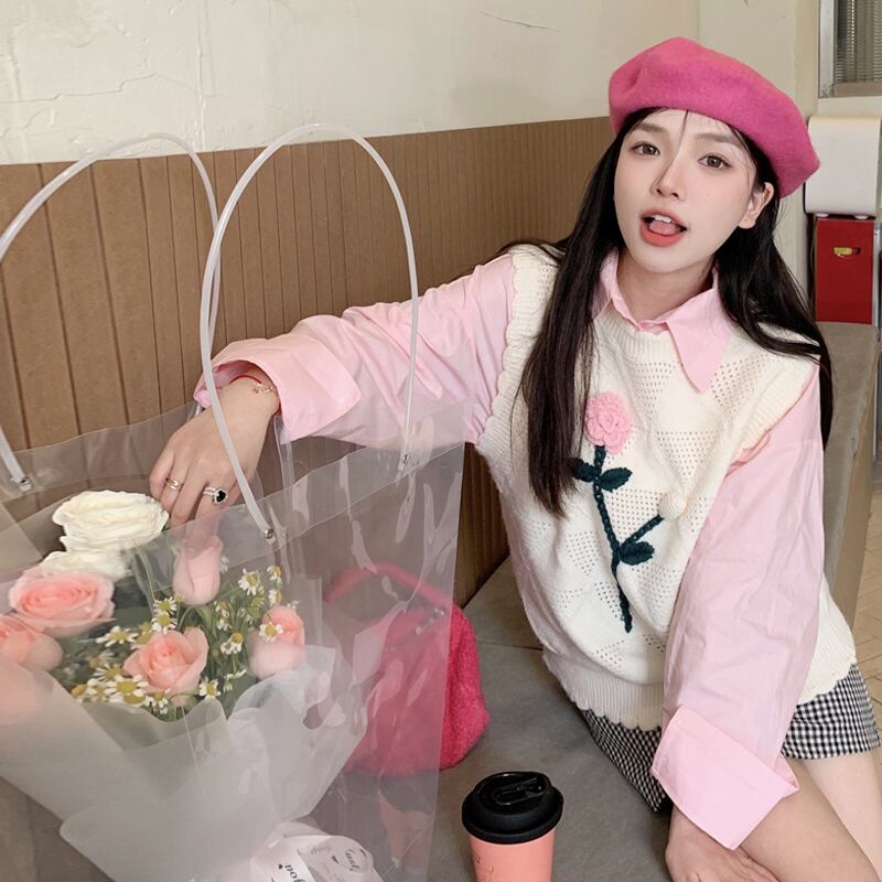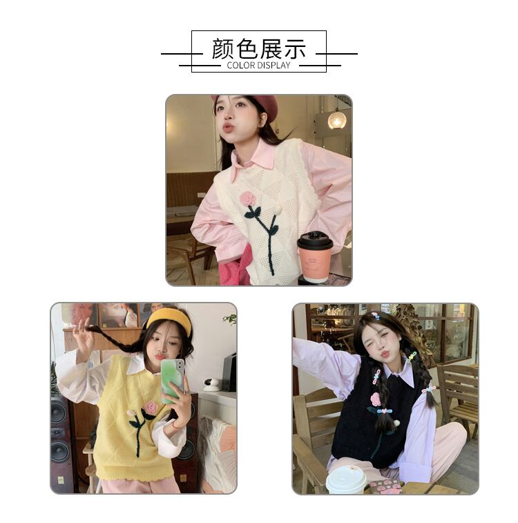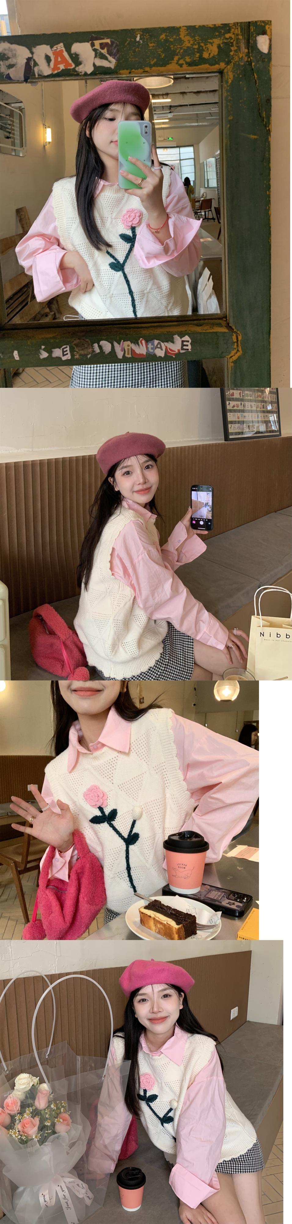 ニットスプリングセーター シャツ セット レッド 春物 SYJ46569035649