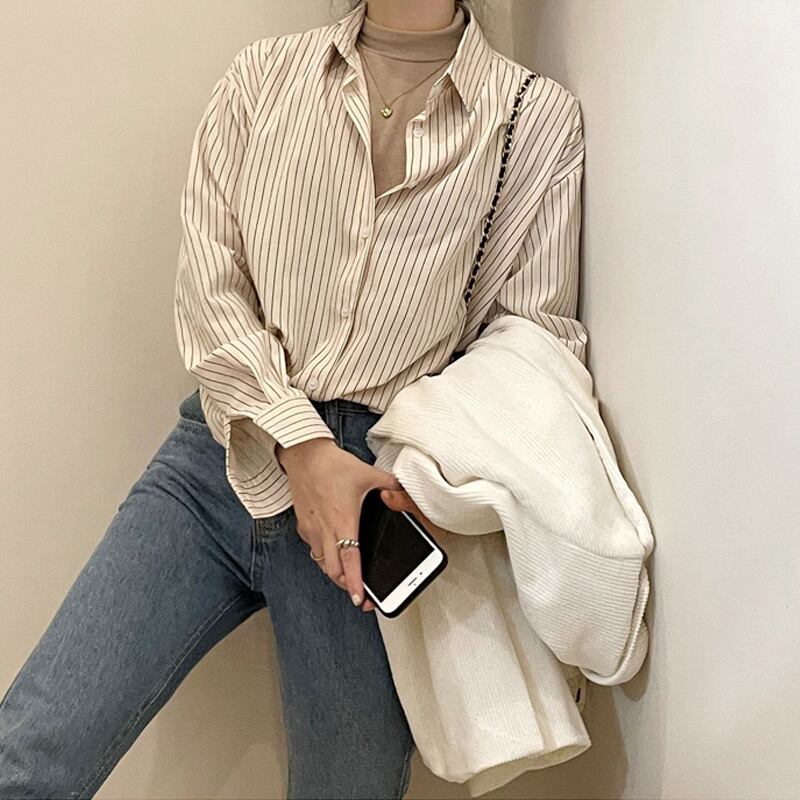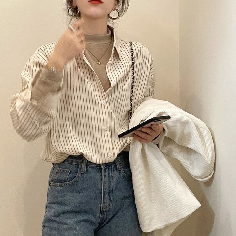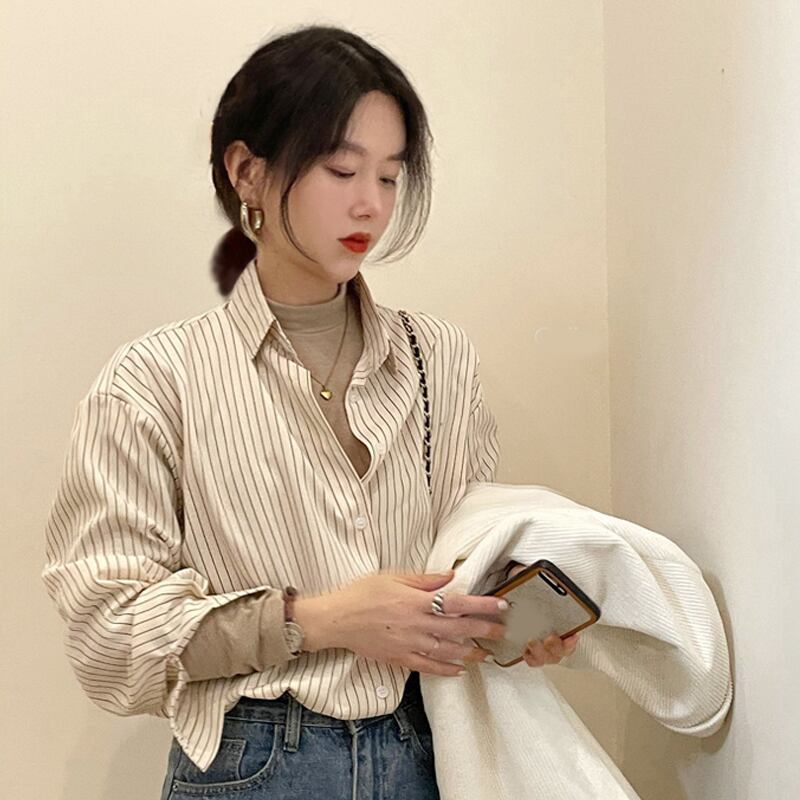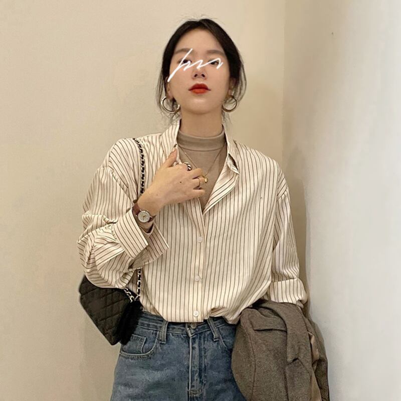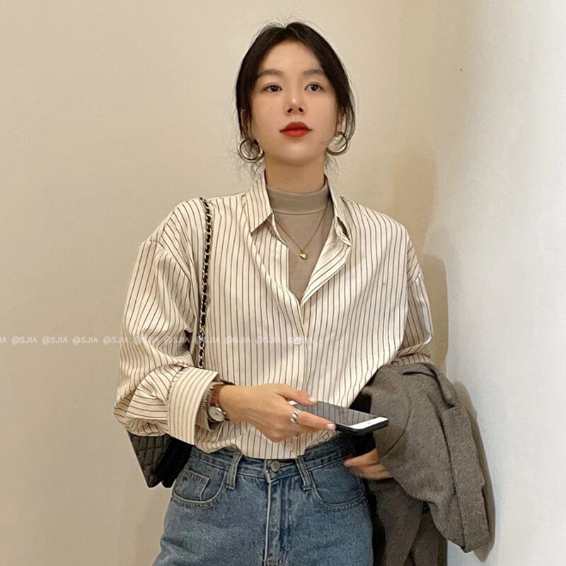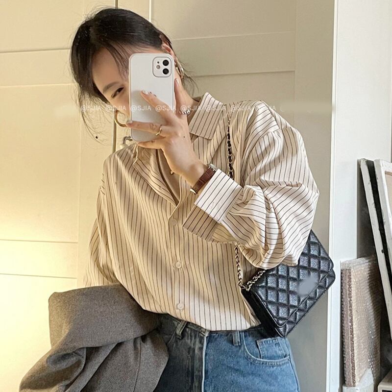 ストライプシャツ ジャケット スプリングスタイルトップス ロング 春物 長袖 SYJ67472669148
