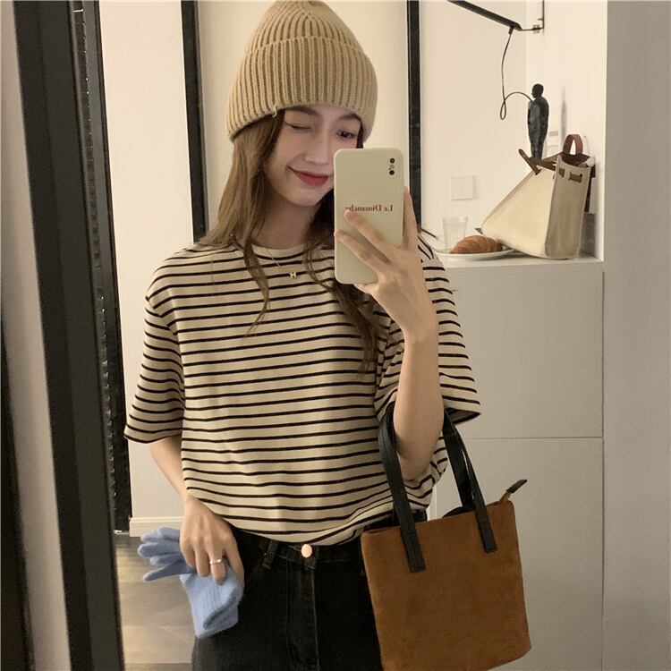 ストライプTシャツ夏服スタイルルーズトップス 夏物 SYJ24758639083