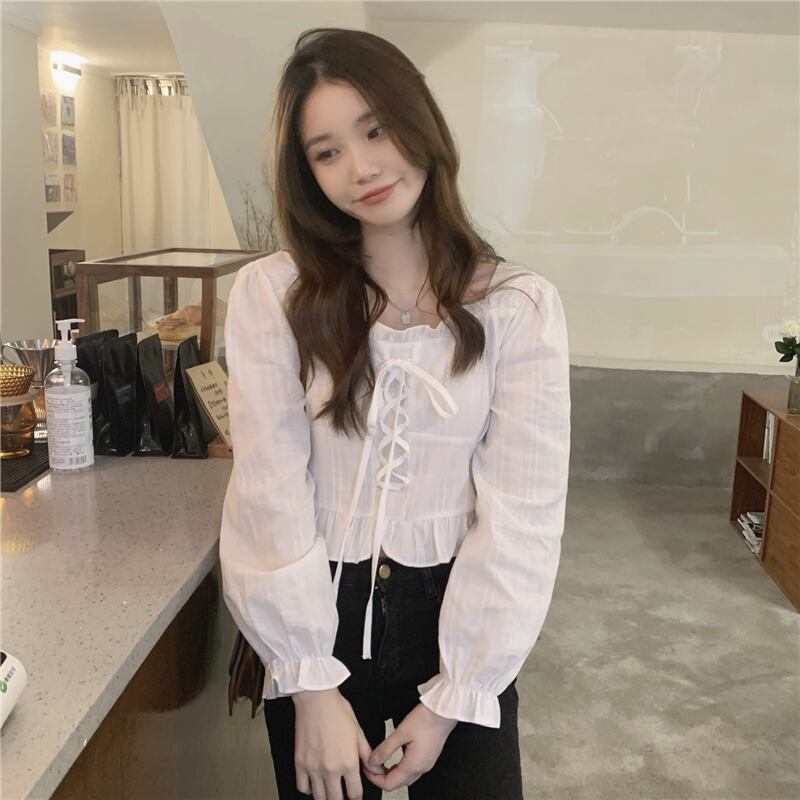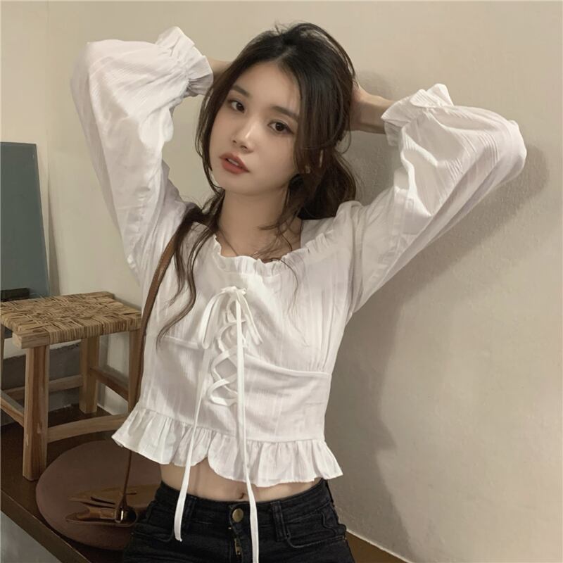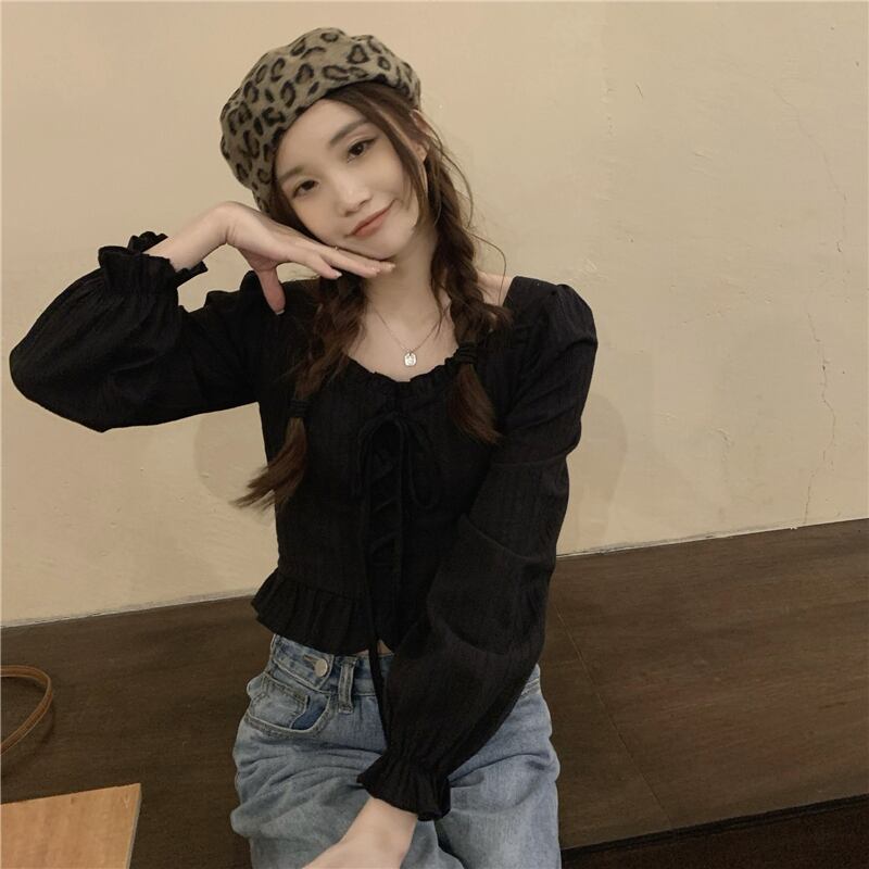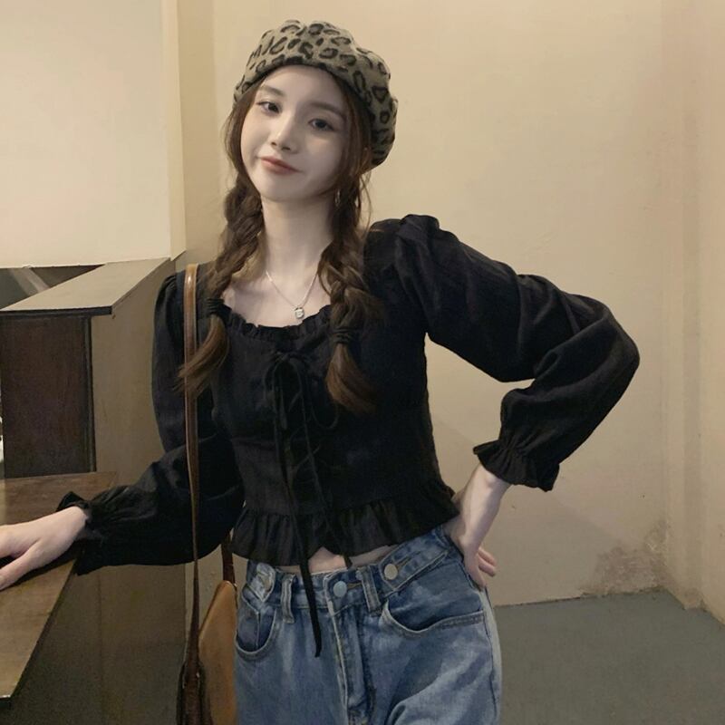 ブラックシャツ スプリングショートトップス ロング 春物 スクウェア 長袖 SYJ79480047163