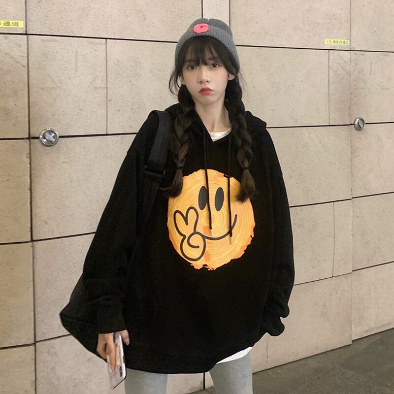 ブラックフードセーター スプリングルーズスタイル薄手トップス ロング 春物 長袖 SYJ61170509031