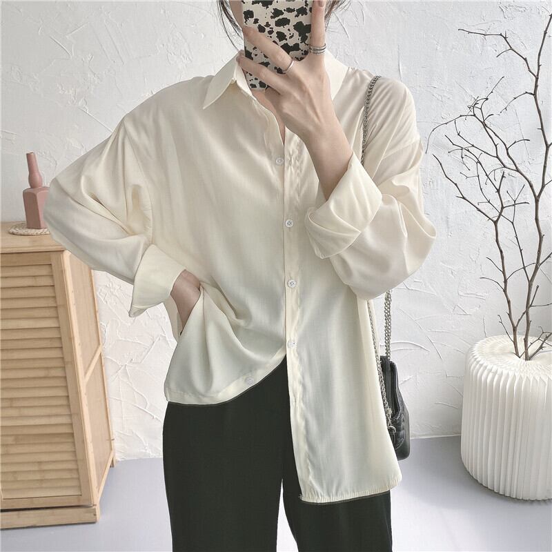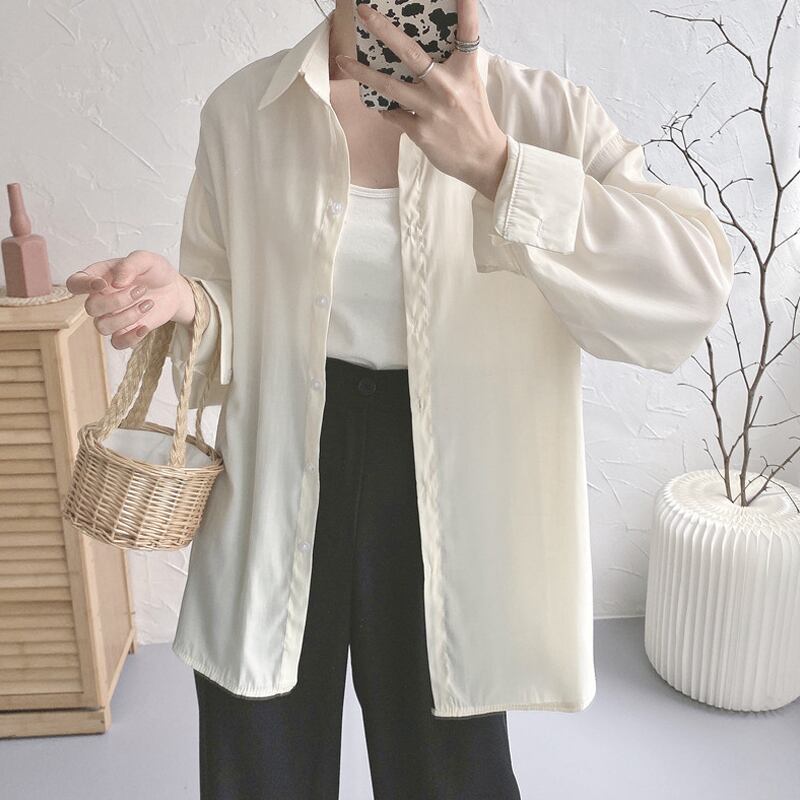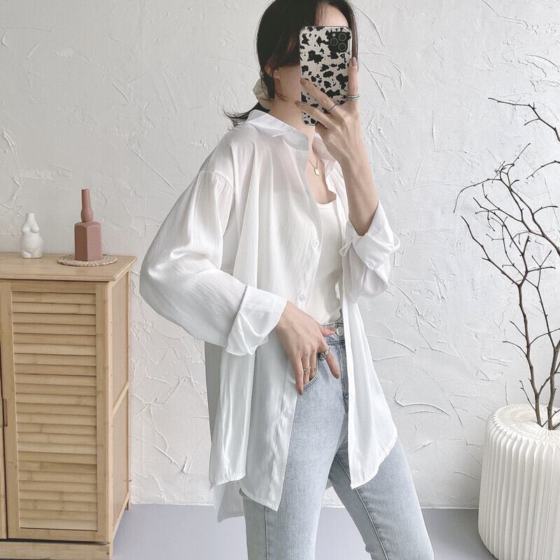 ホワイトシャツ スプリング韓国ファッション ロング 春物 長袖 SYJ48054240201