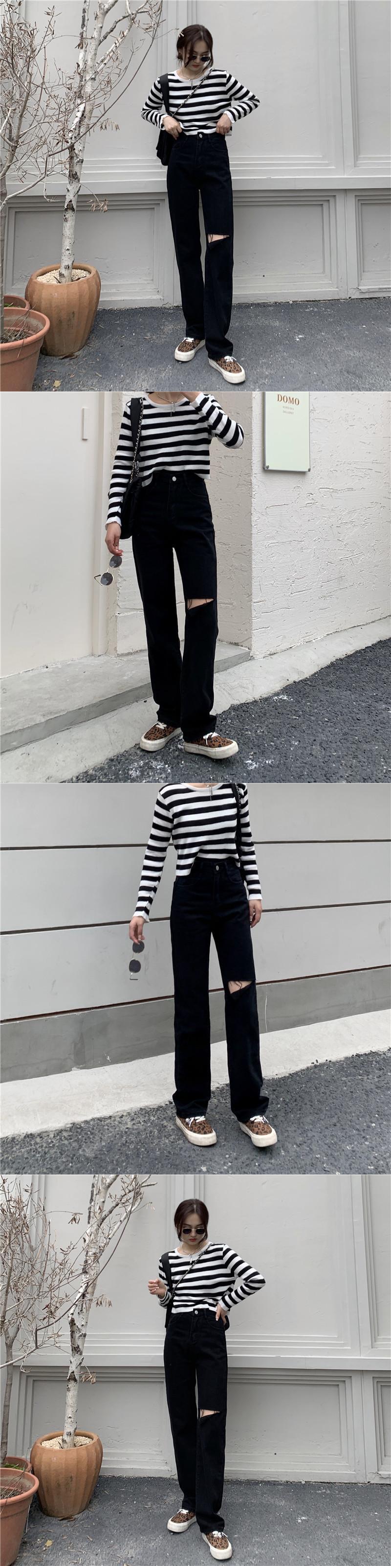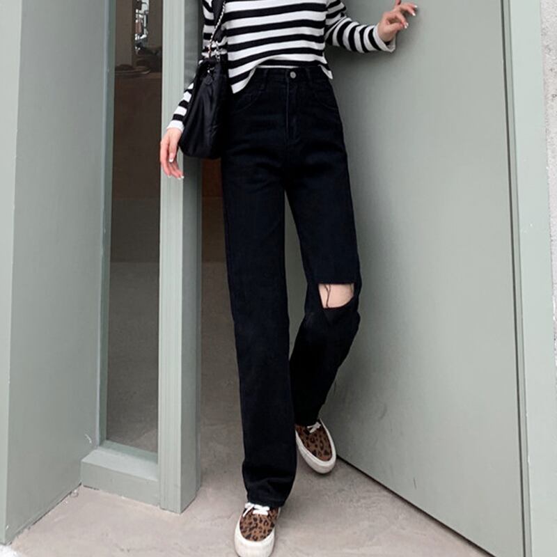 ブラックジーンズ スプリングルーズパンツ ハイウェストウェスト薄手 春物 ウエスト SYJ91273696643
