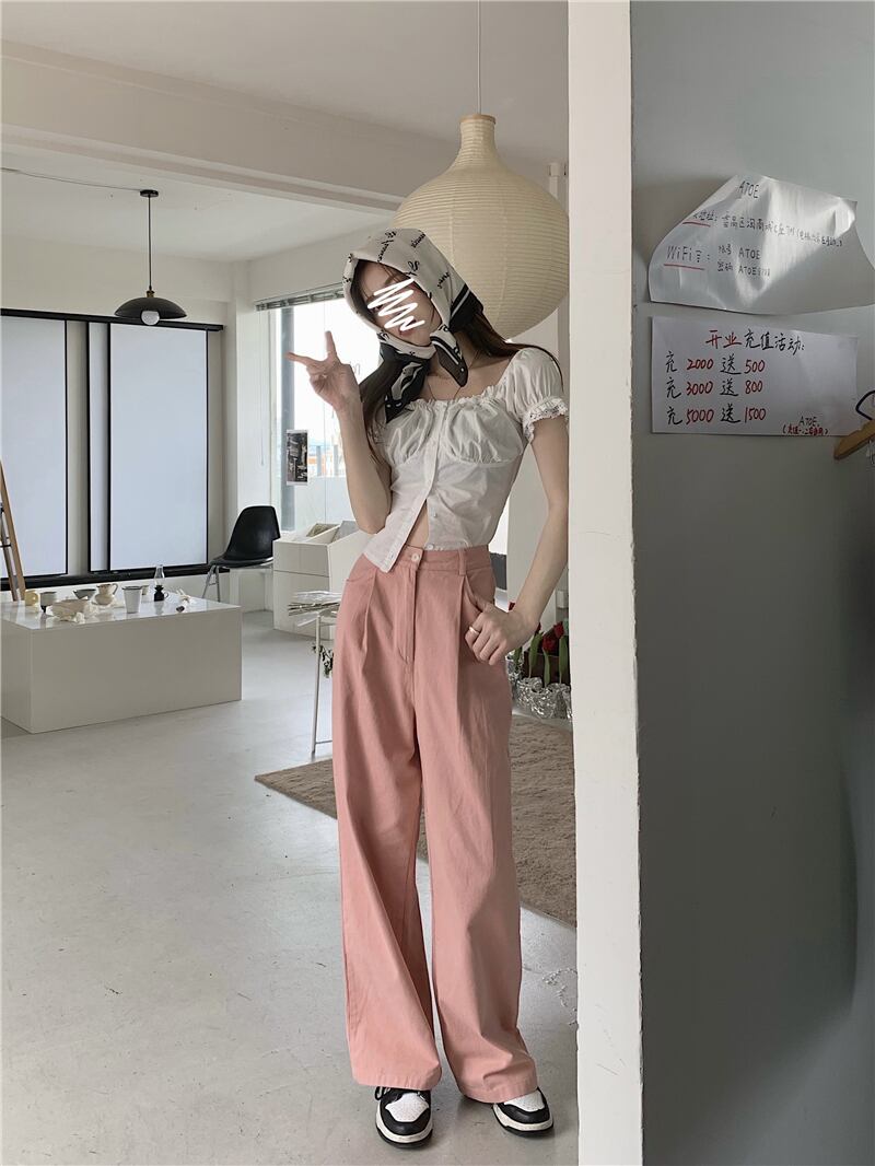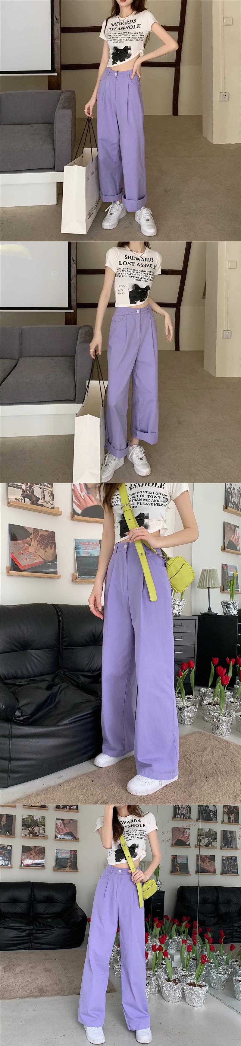カジュアルパンツ ルーズ夏服ハイウェスト薄手 夏物 パープル ウエスト SYJ61822209383