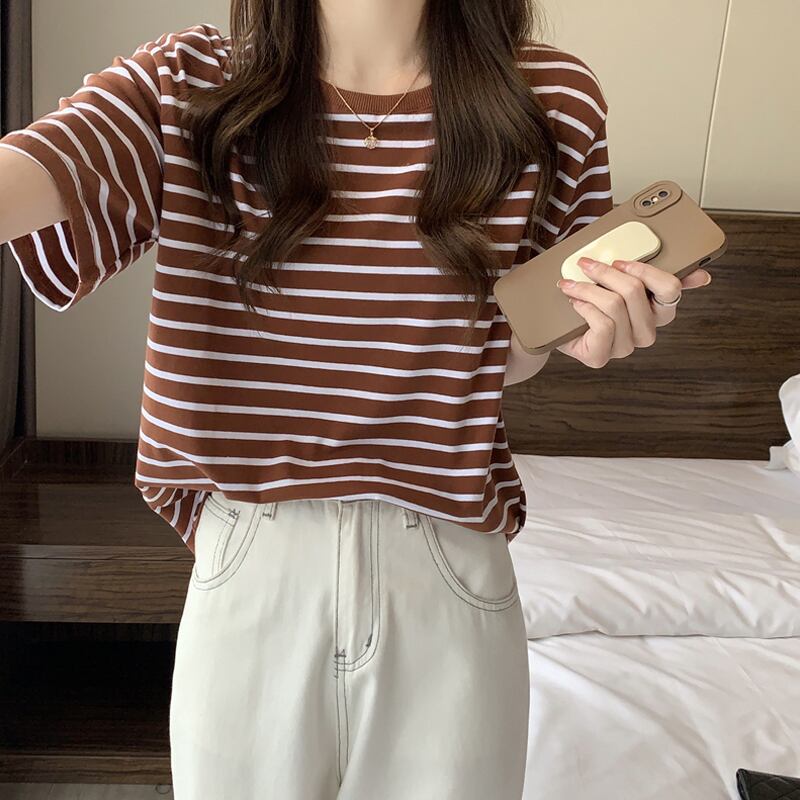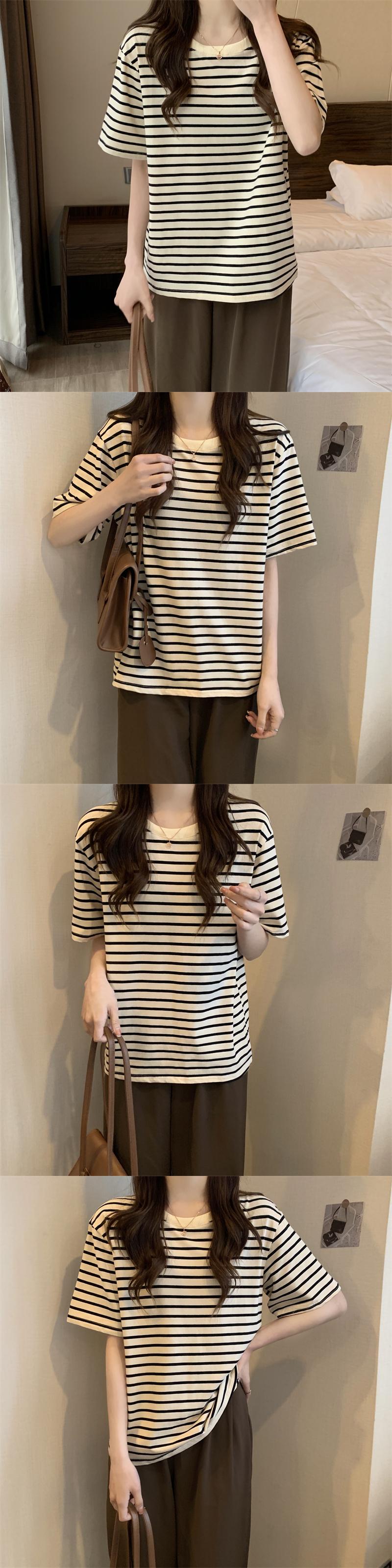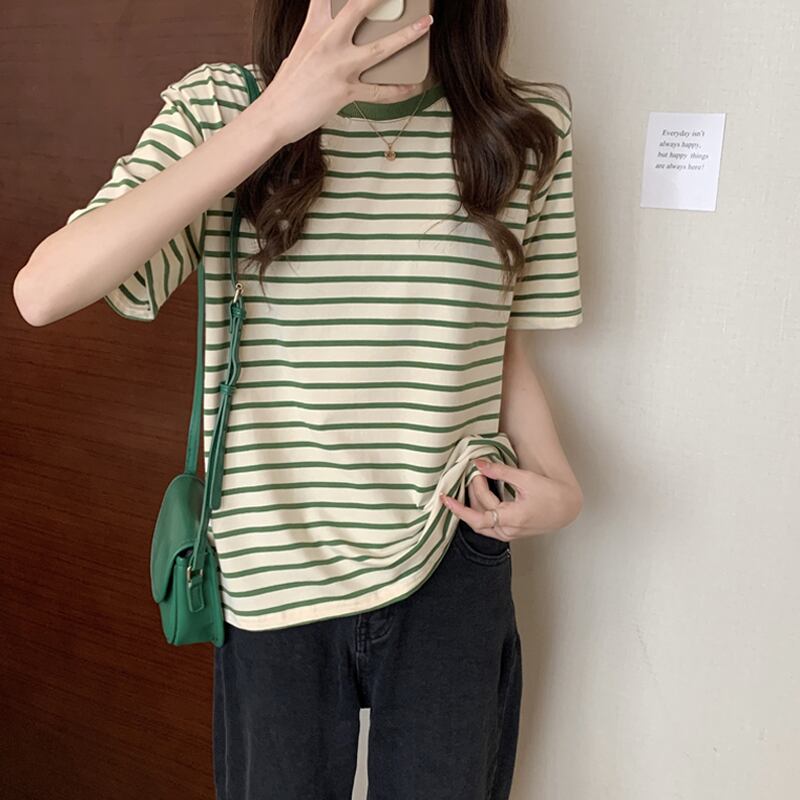 Tシャツ夏服スタンダードストライプトップス NEW レトロ 夏物 SYJ81774041985