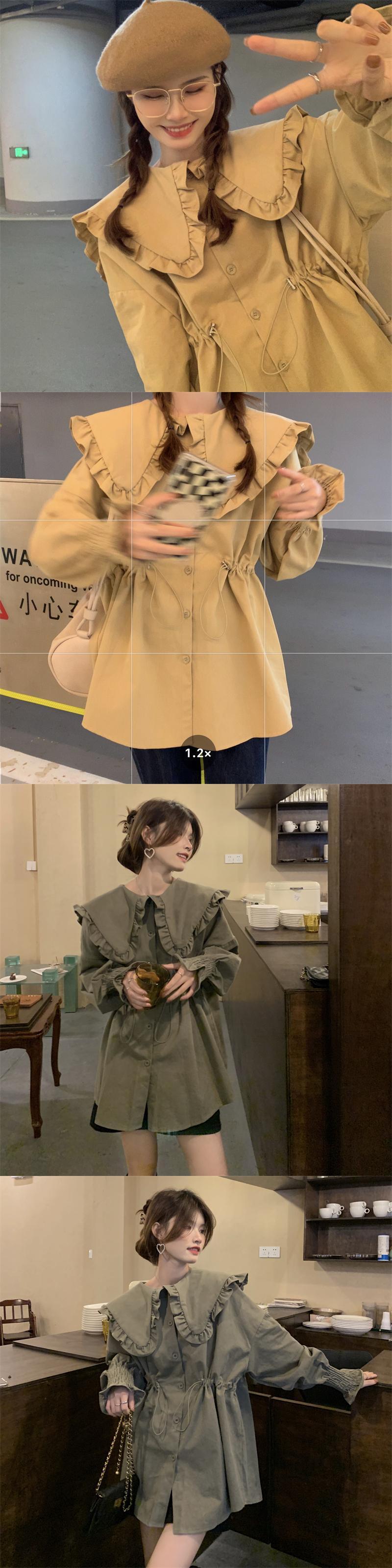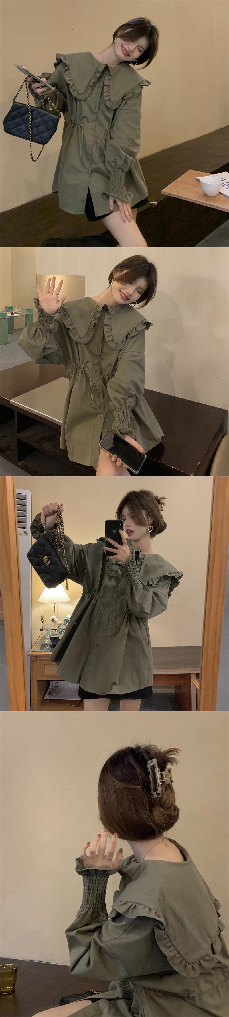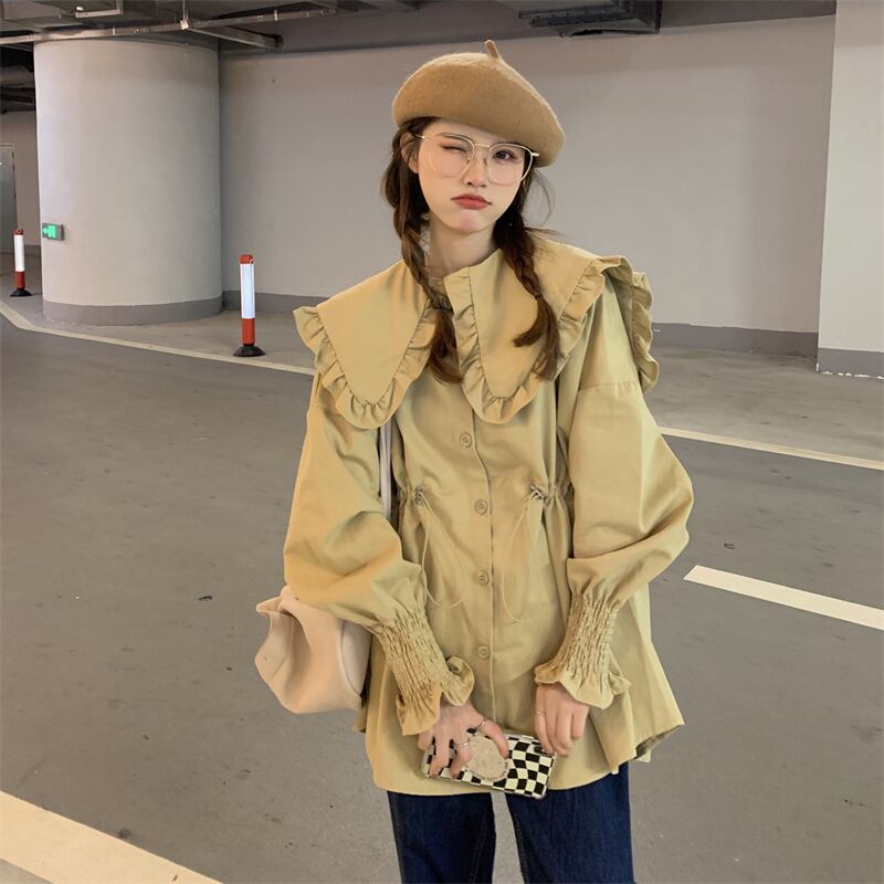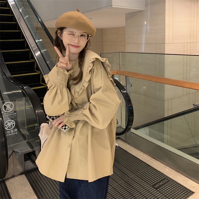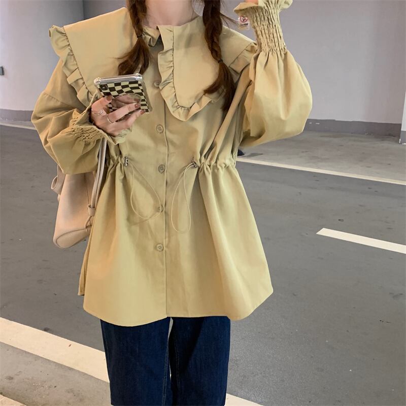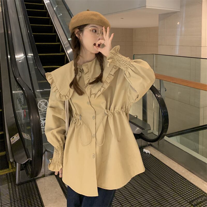 カーキカラーシャツ スプリング秋物韓国ファッショントップス 大人ガーリー スウィート キュート カジュアル 春物 オータム ミドル丈 SYJ75208337295
