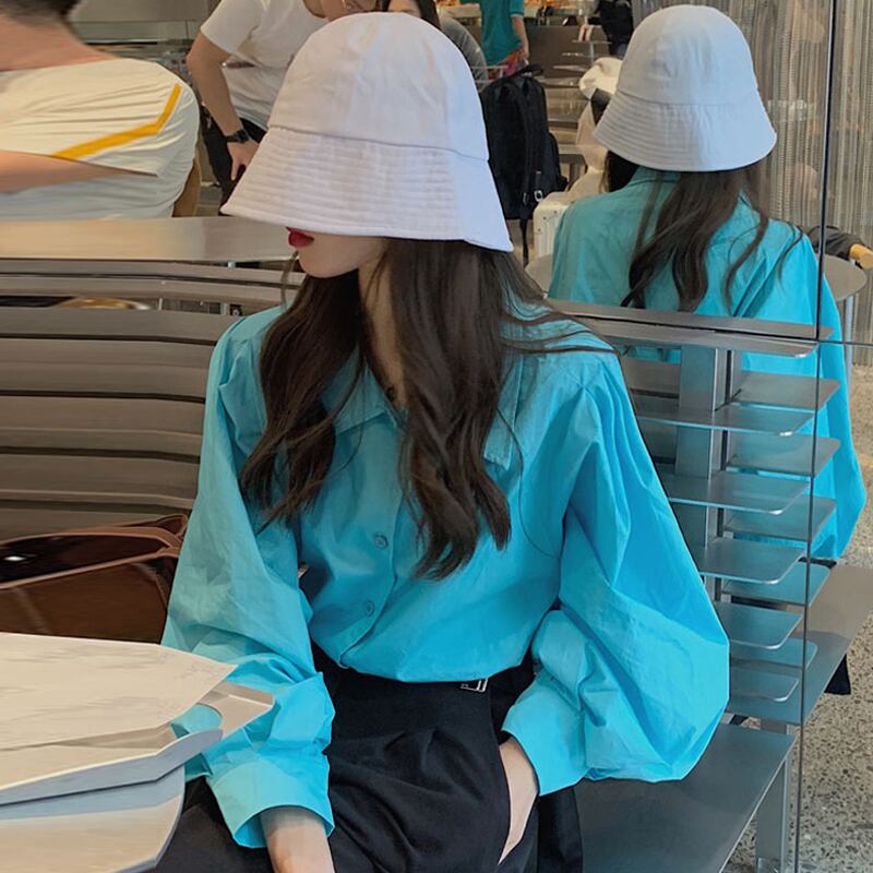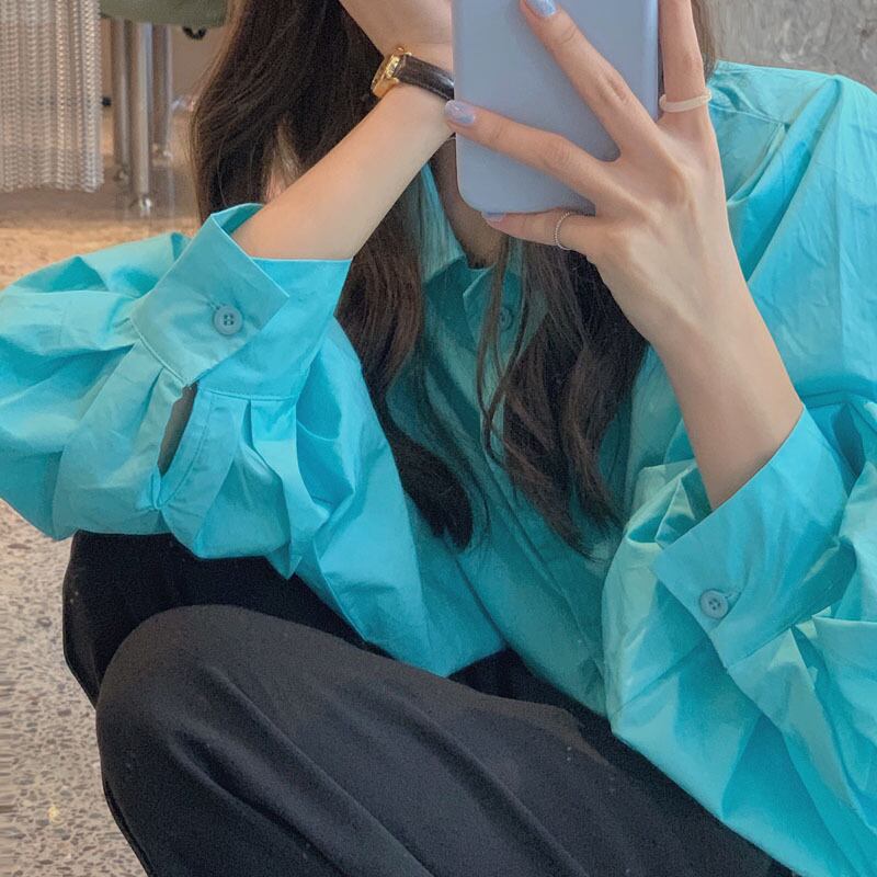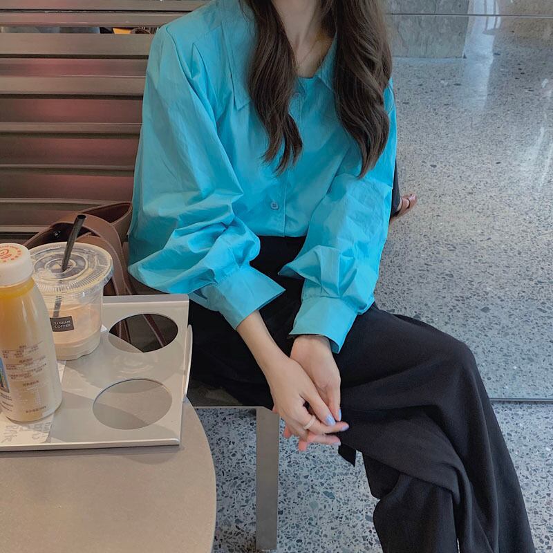 ブルーシャツ スプリングスタンダードスタイルトップス ロング レトロ 春物 長袖 SYJ96982161580