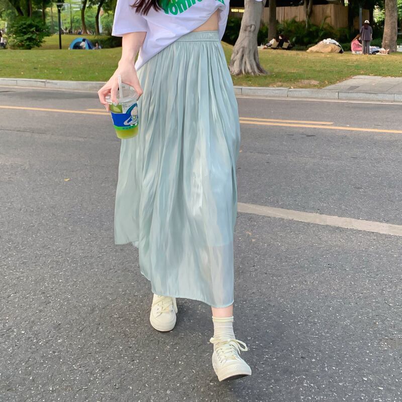 スカート 夏服ハイウェストウェストAラインロングNEW 夏物 ウエスト ミドル丈 SYJ34042487979