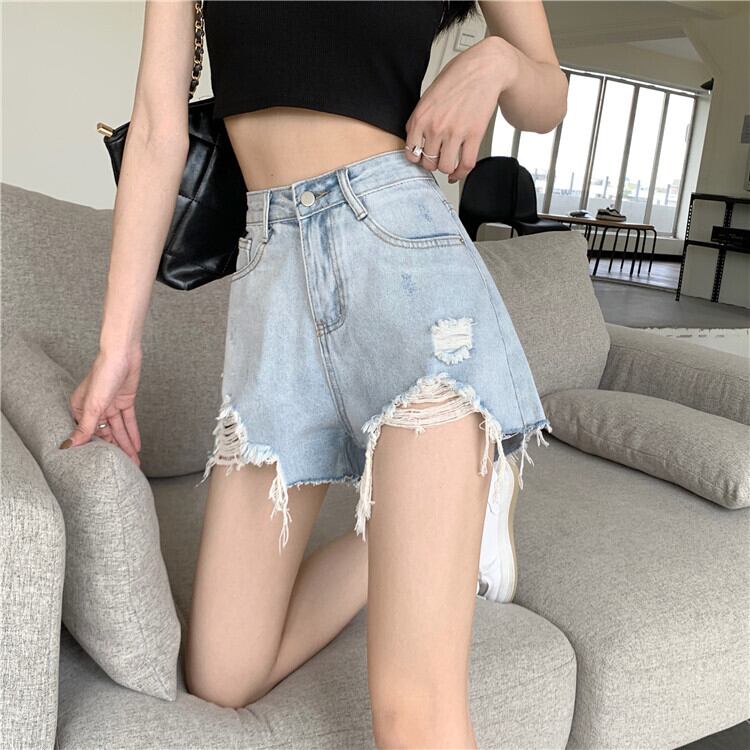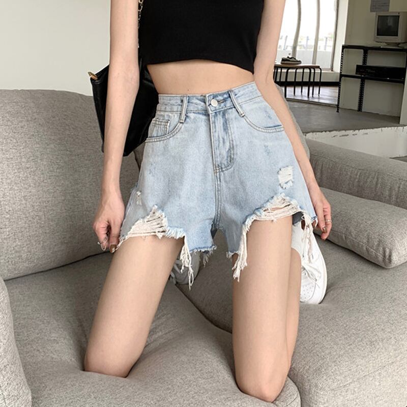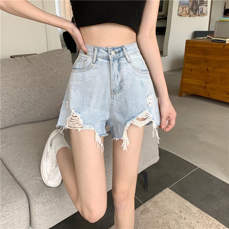 ブルーショーツ 夏服ハイウェスト薄手Aラインパンツ 夏物 ウエスト SYJ12287901599