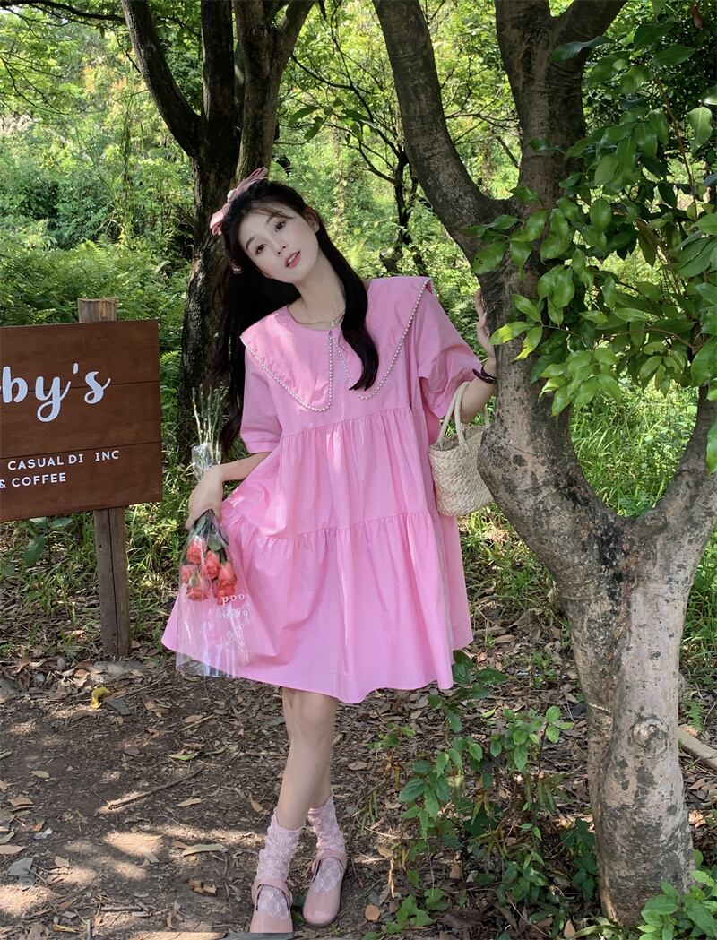 カラーワンピース夏服スカート ピンク 夏物 SYJ14754279219