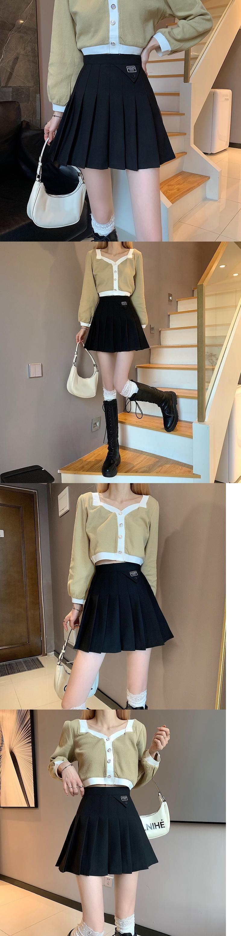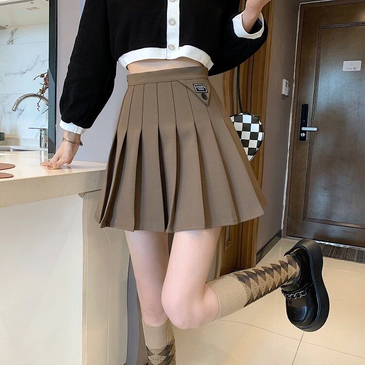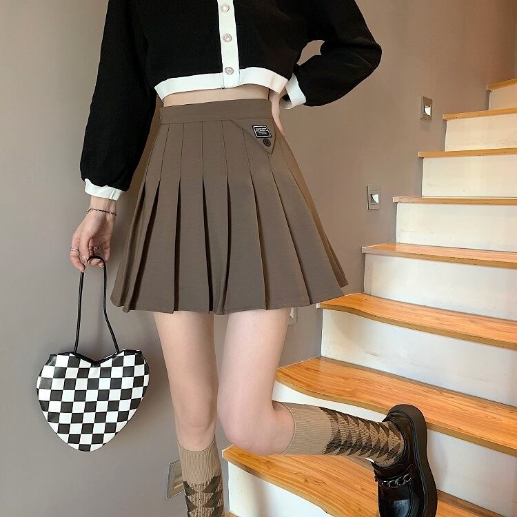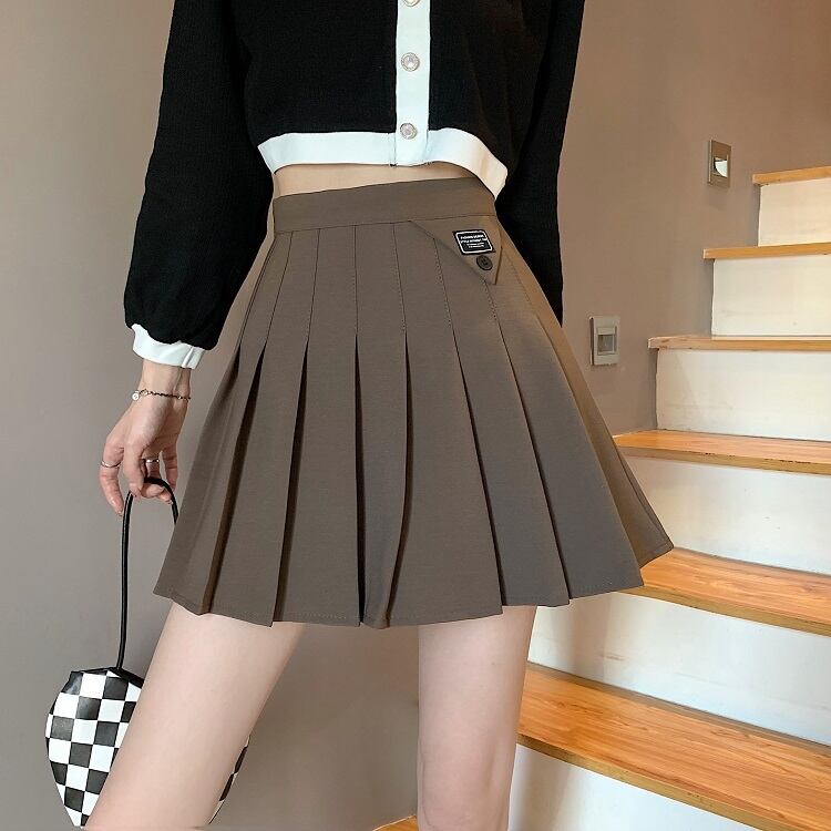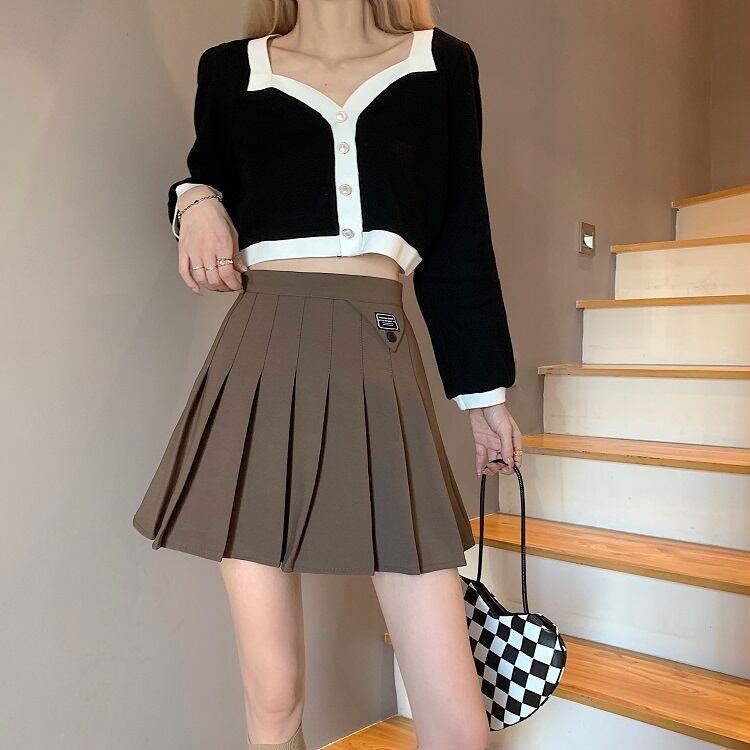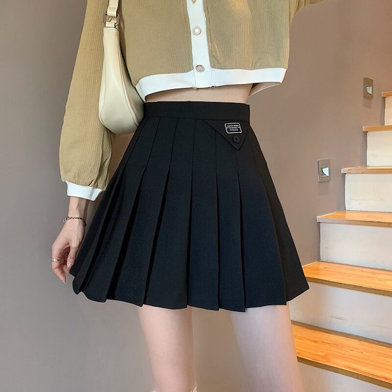 ブラックプリーツスカート 夏服ハイウェストウェストAラインショート 大人ガーリー スウィート キュート カジュアル 夏物 ウエスト SYJ50100252004