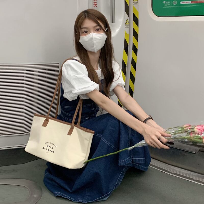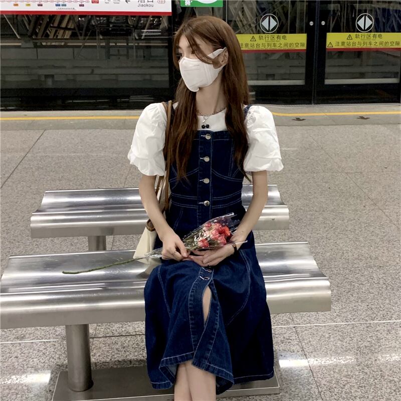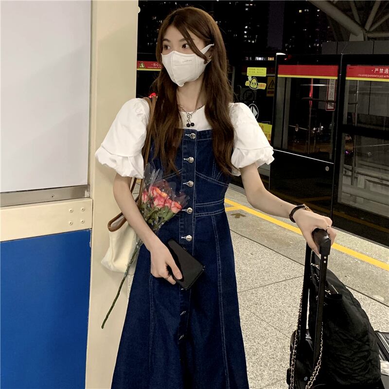 色:ブルーストラップワンピース,白いシャツのワンピース