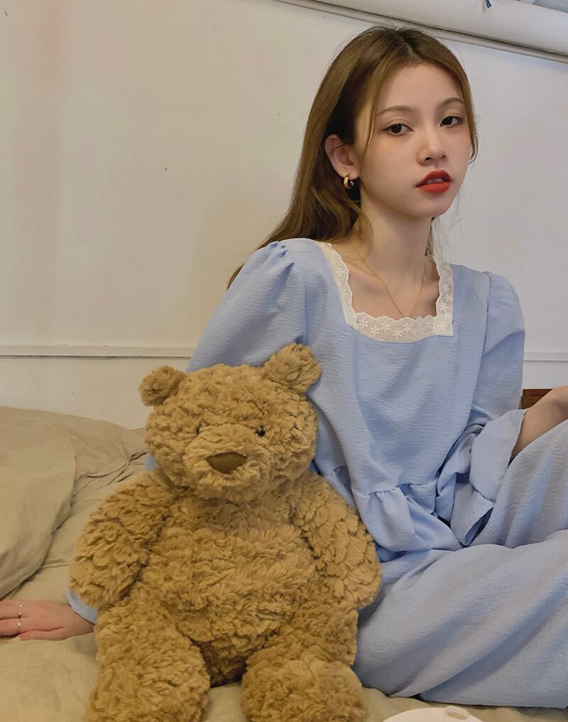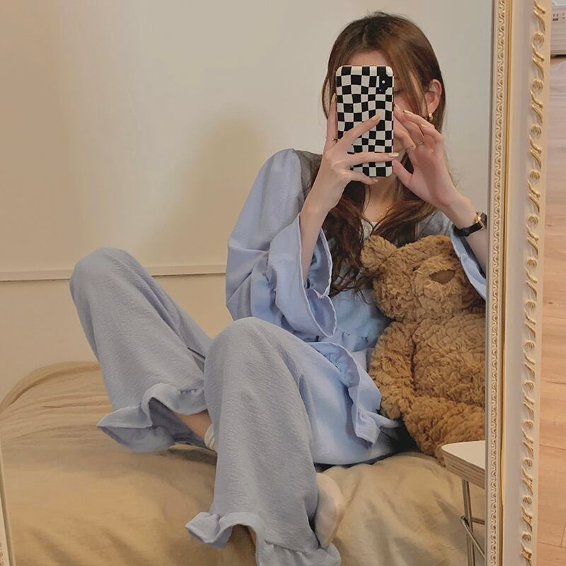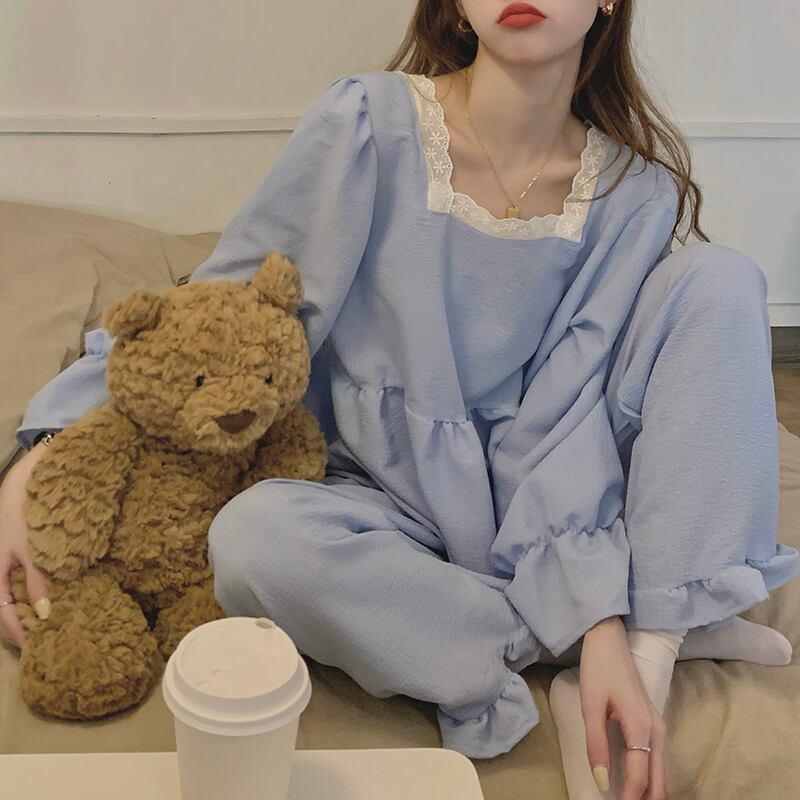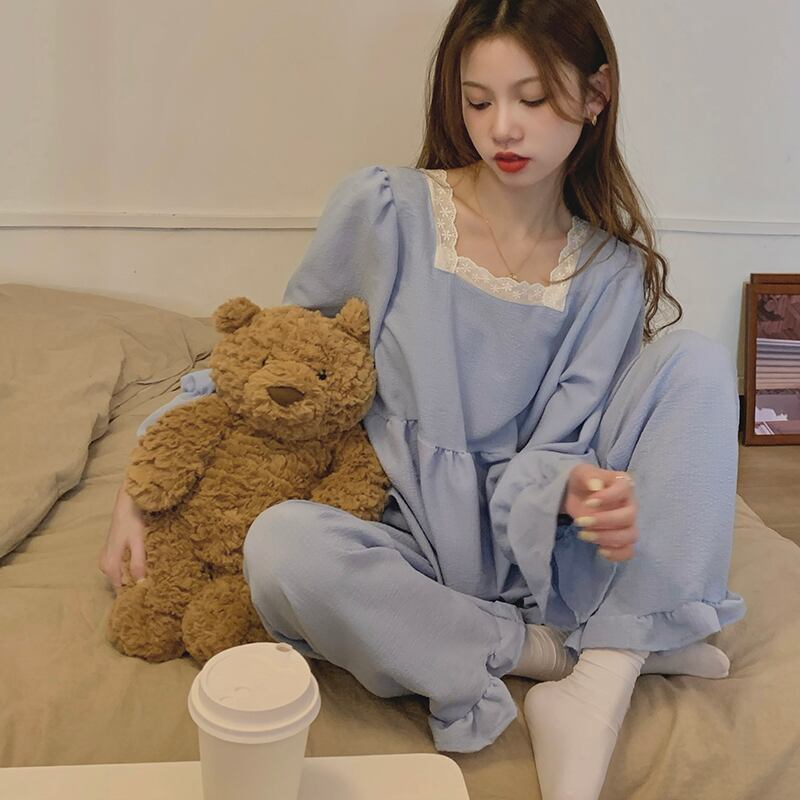 ブルーパジャマ ルームウェアスプリングスタイルカジュアルセット ロング 大人ガーリー スウィート キュート 春物 長袖 SYJ66622141760