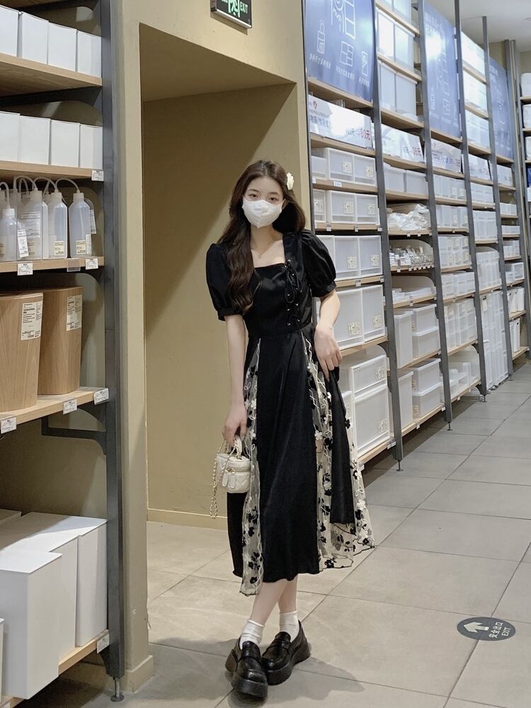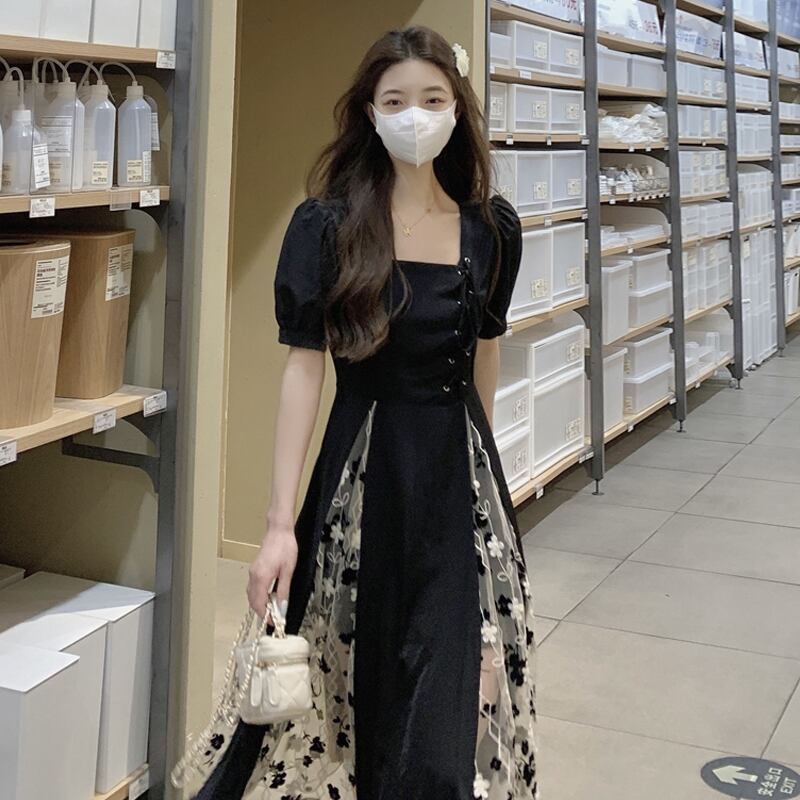 ブラックワンピース夏服スリーブロングスカート 夏物 スクウェア SYJ17172664543