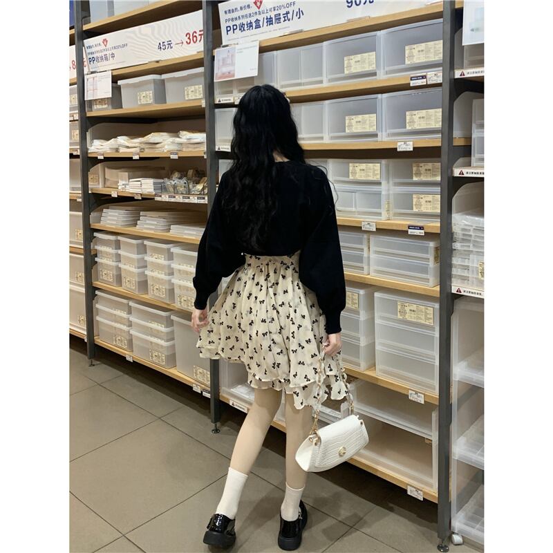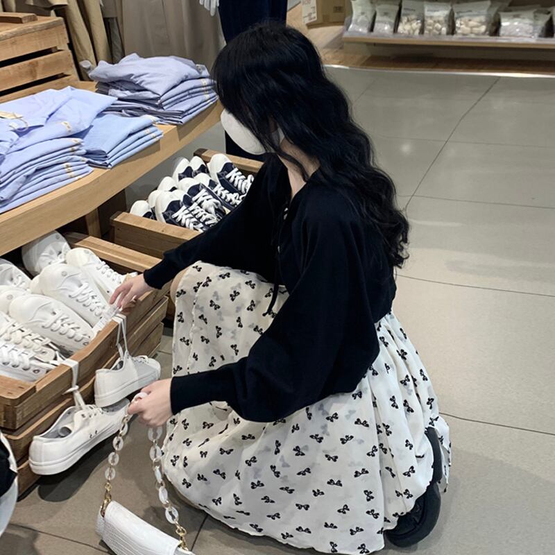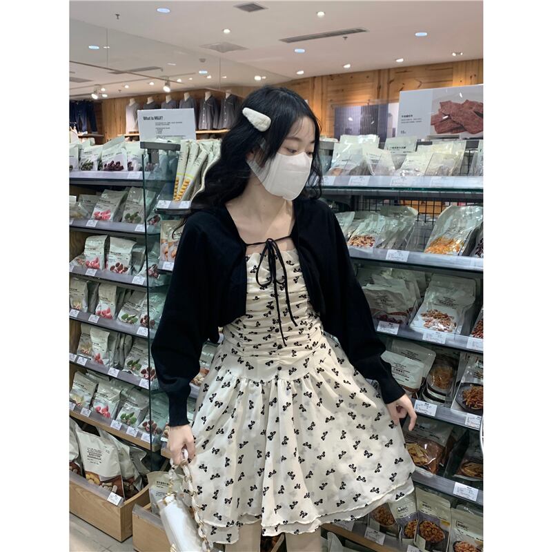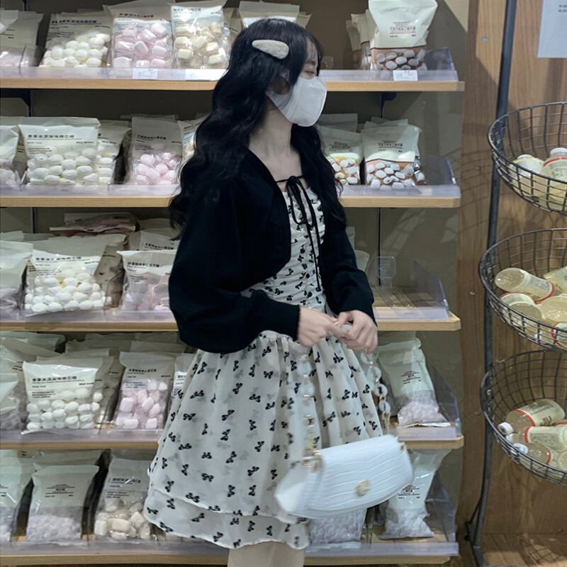 色:ブラックカーディガンワンピース,花柄ワンピース一枚