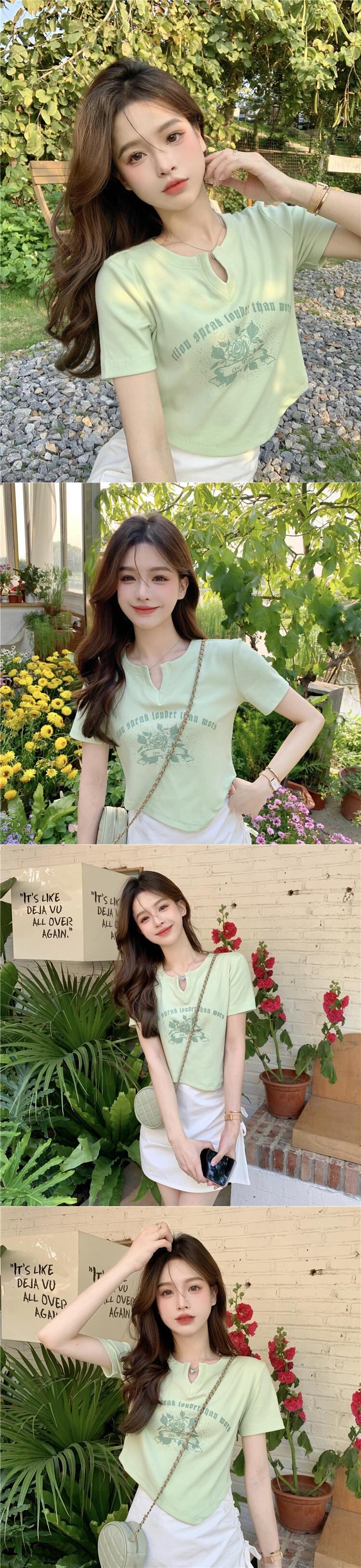 半袖スリーブTシャツ夏服トップス ショート ハーフスリーブ 大人ガーリー スウィート キュート カジュアル 夏物 ピュア SYJ15038194019