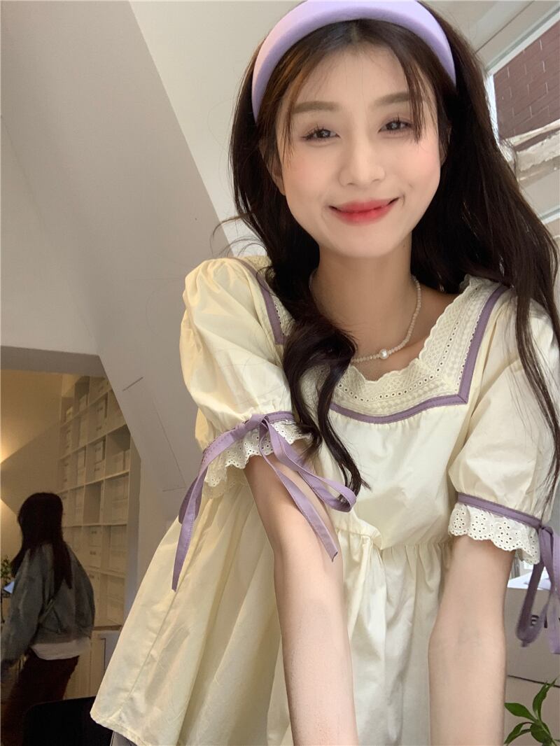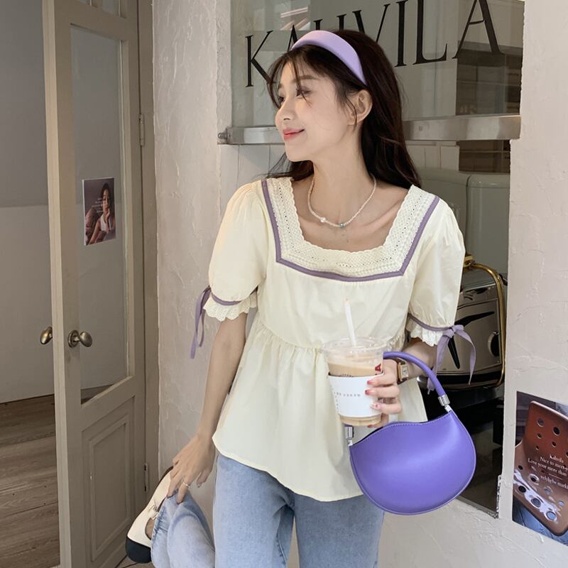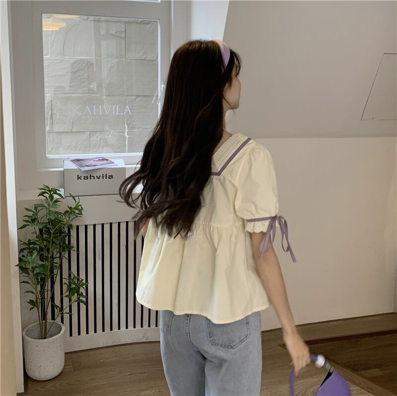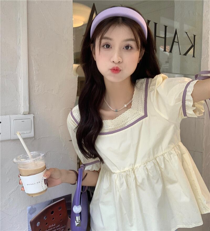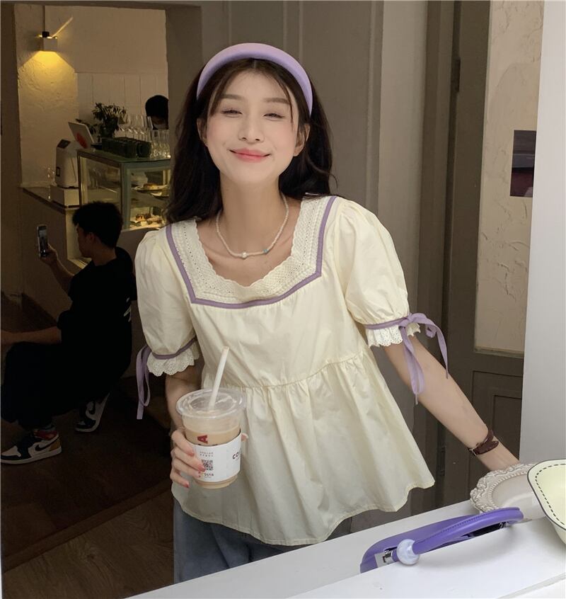 韓国ファッションスタイルトップス 夏服シャツ 大人ガーリー スウィート キュート カジュアル 夏物 スクウェア SYJ86064539497