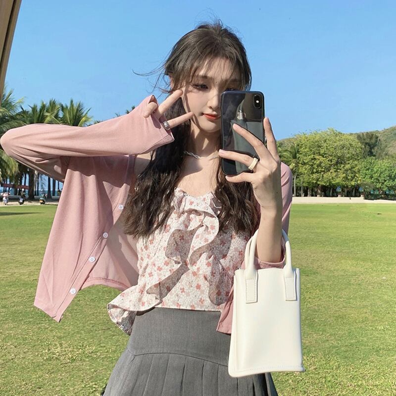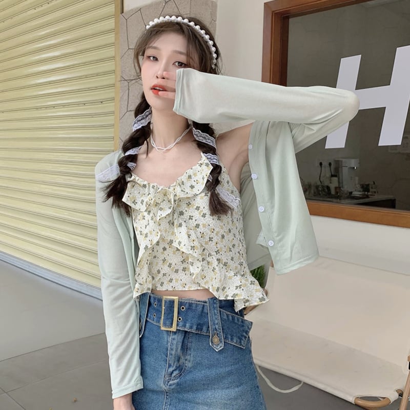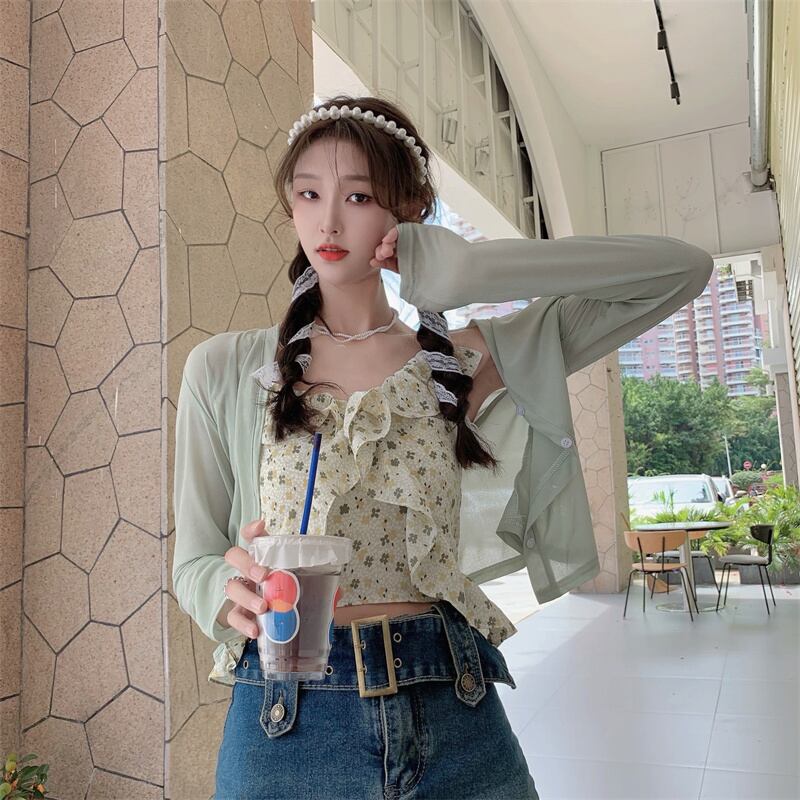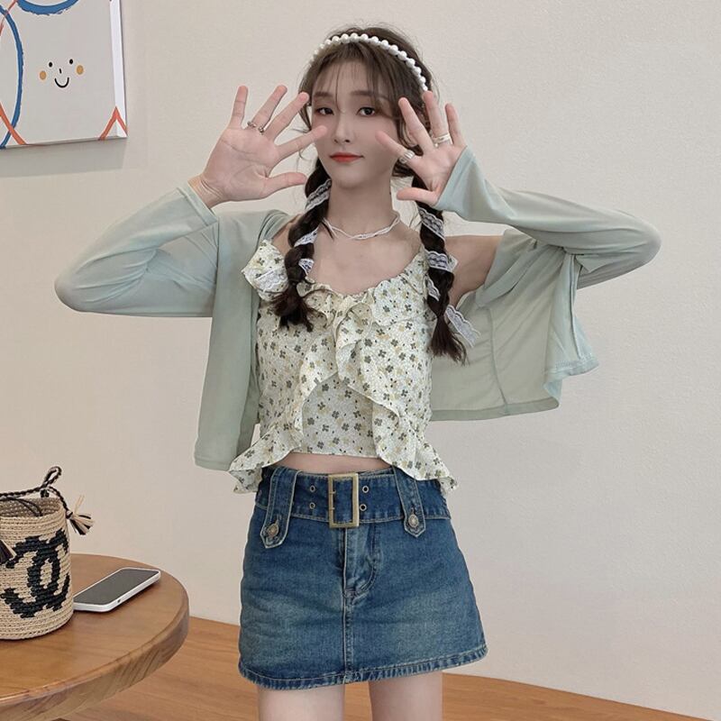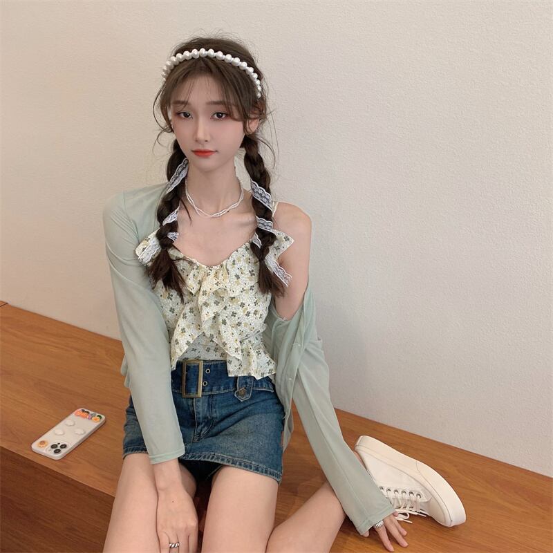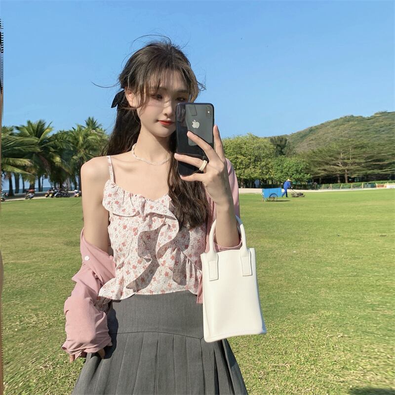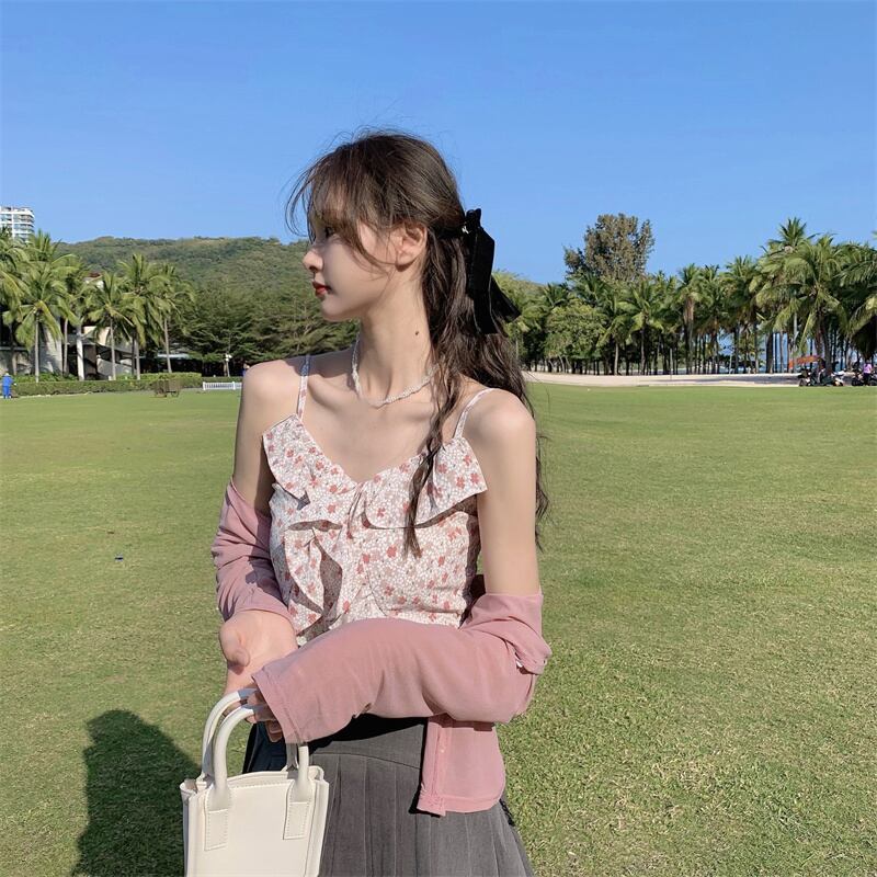 フローラル夏服ゆったりノースリーブショートトップス 夏物 花柄 SYJ82251541551