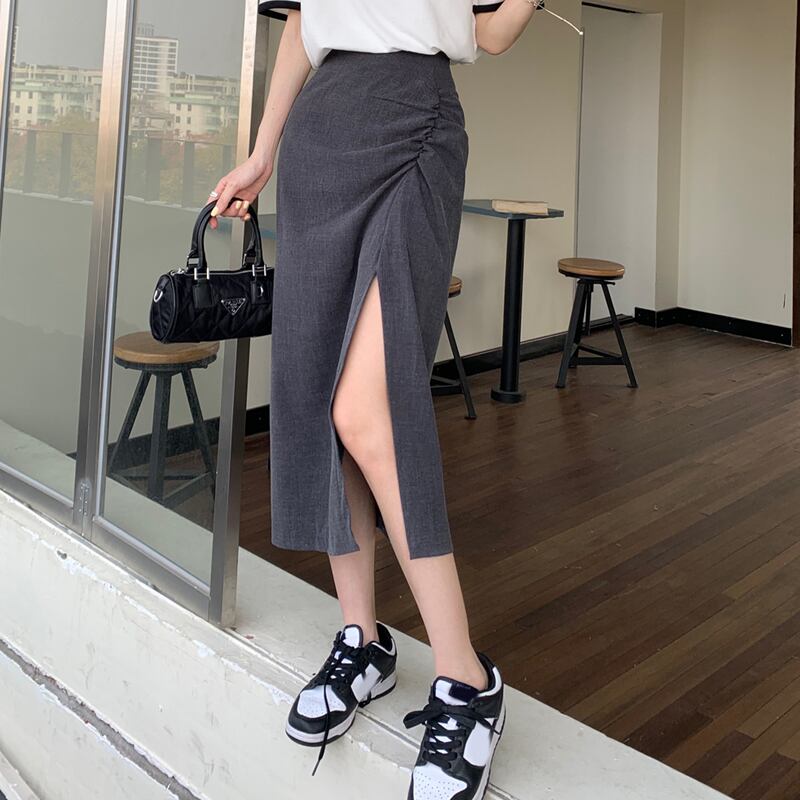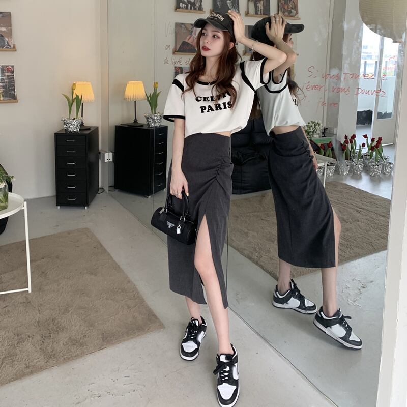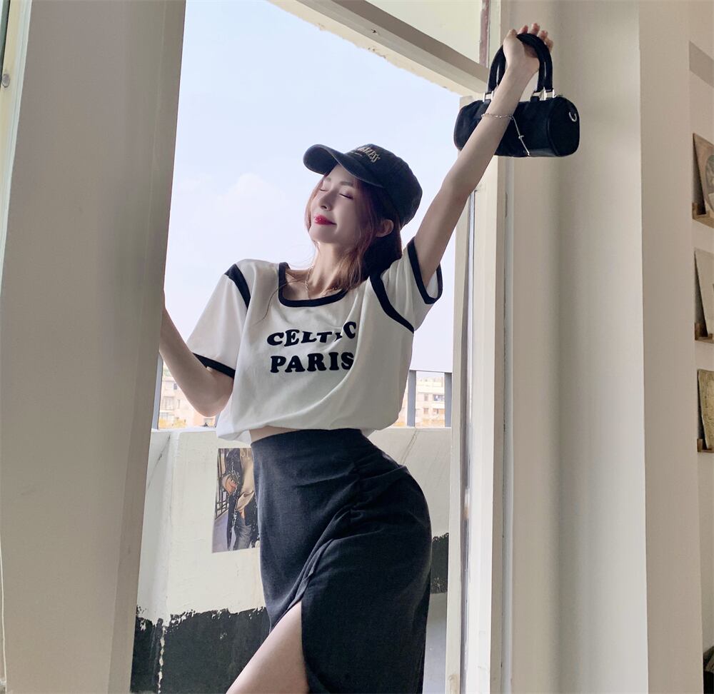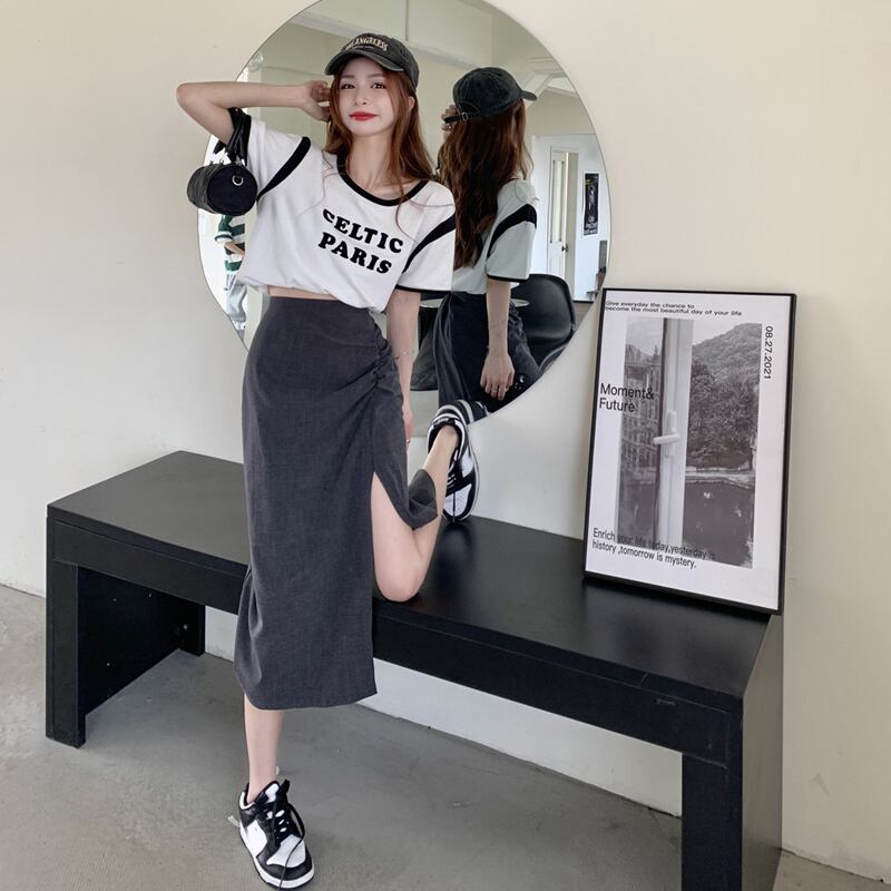 色:コントラストカラーTシャツワンピース,グレースリットスカートワンピース