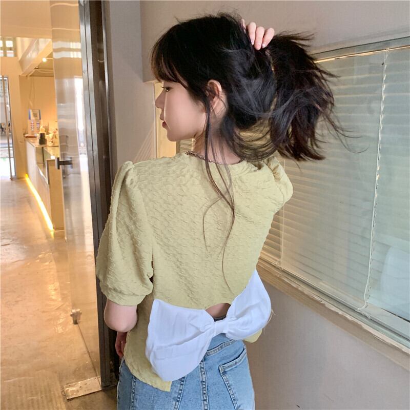 グリーンリボンショートTシャツ夏服トップス NEW 夏物 SYJ46302260929