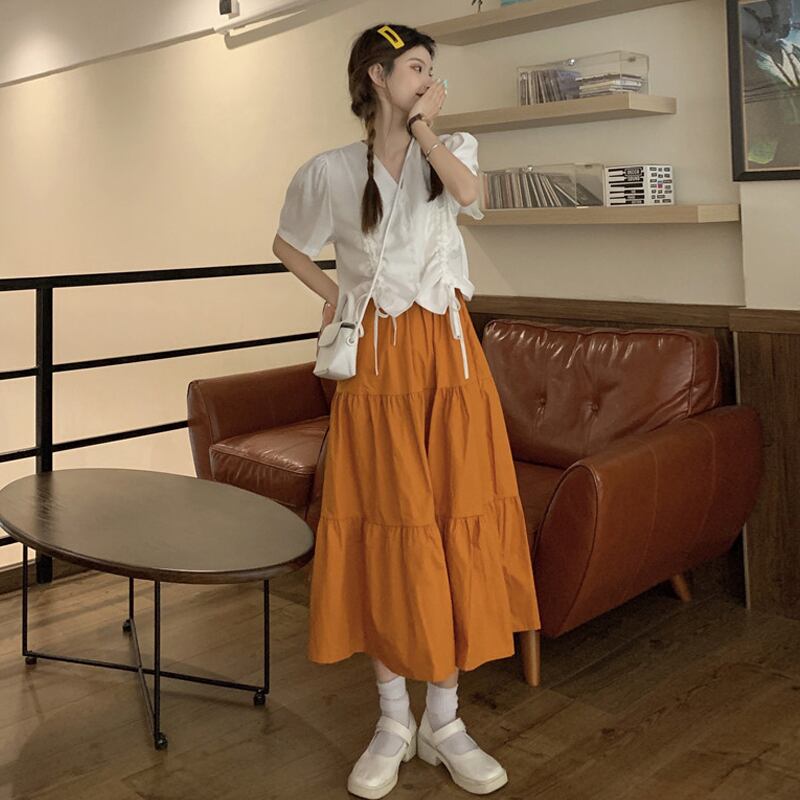 色:白いシャツのワンピース,黄色のスカートワンピース