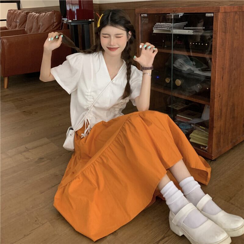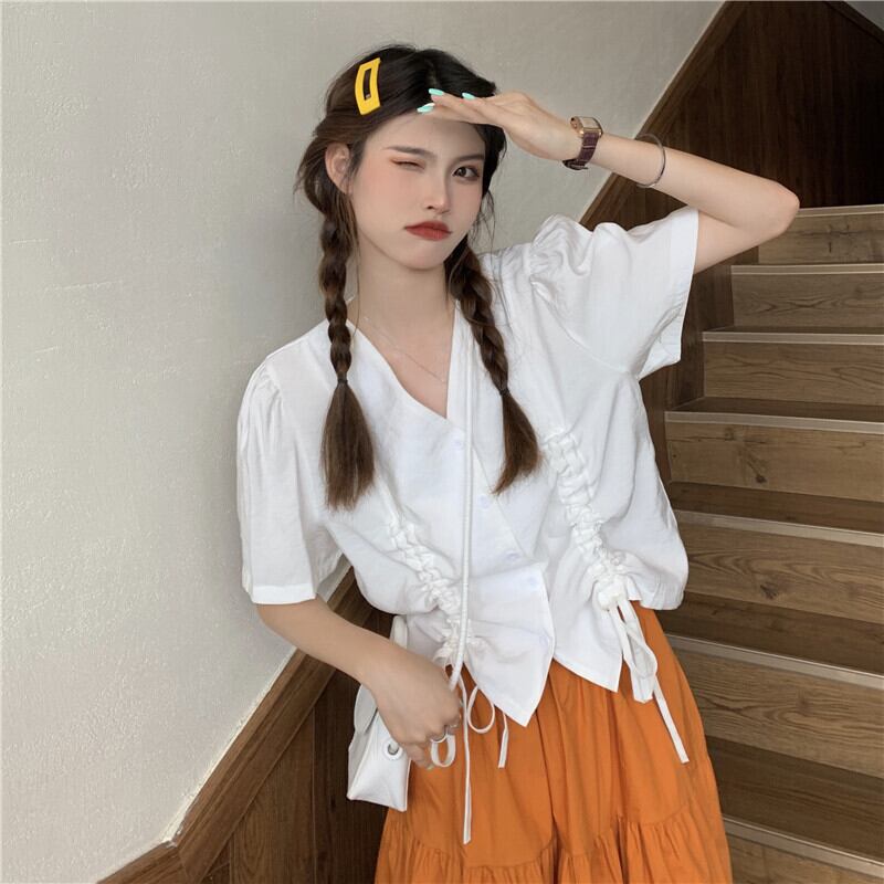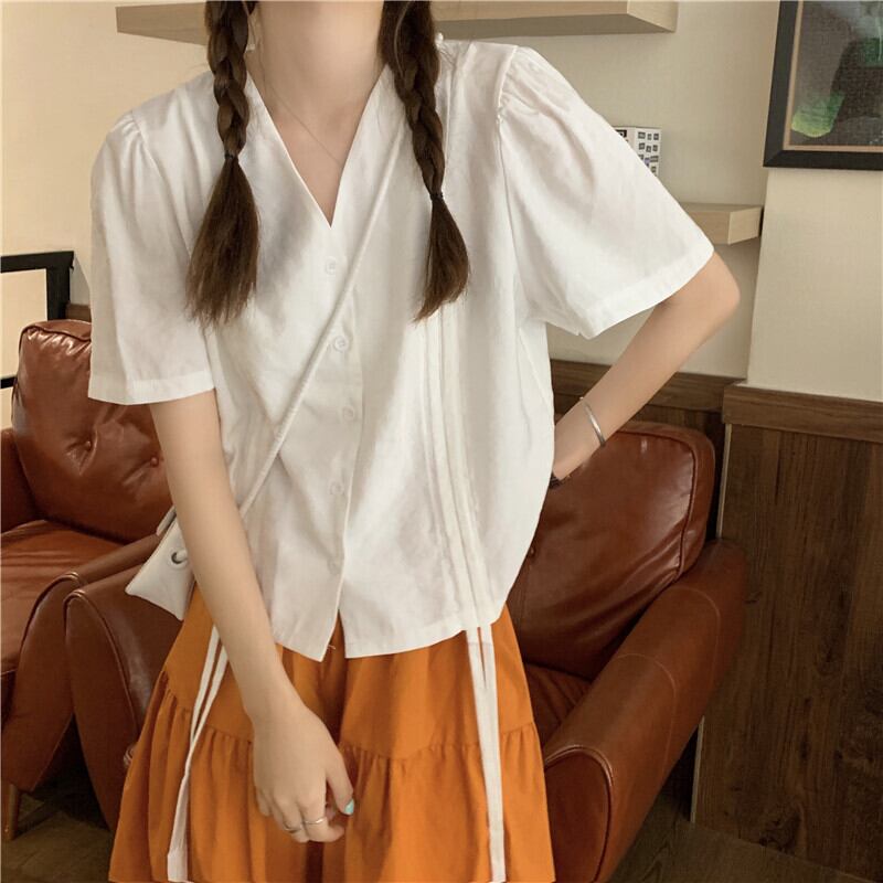 ホワイトシャツ 夏服Vネックトップス 夏物 SYJ50225574812