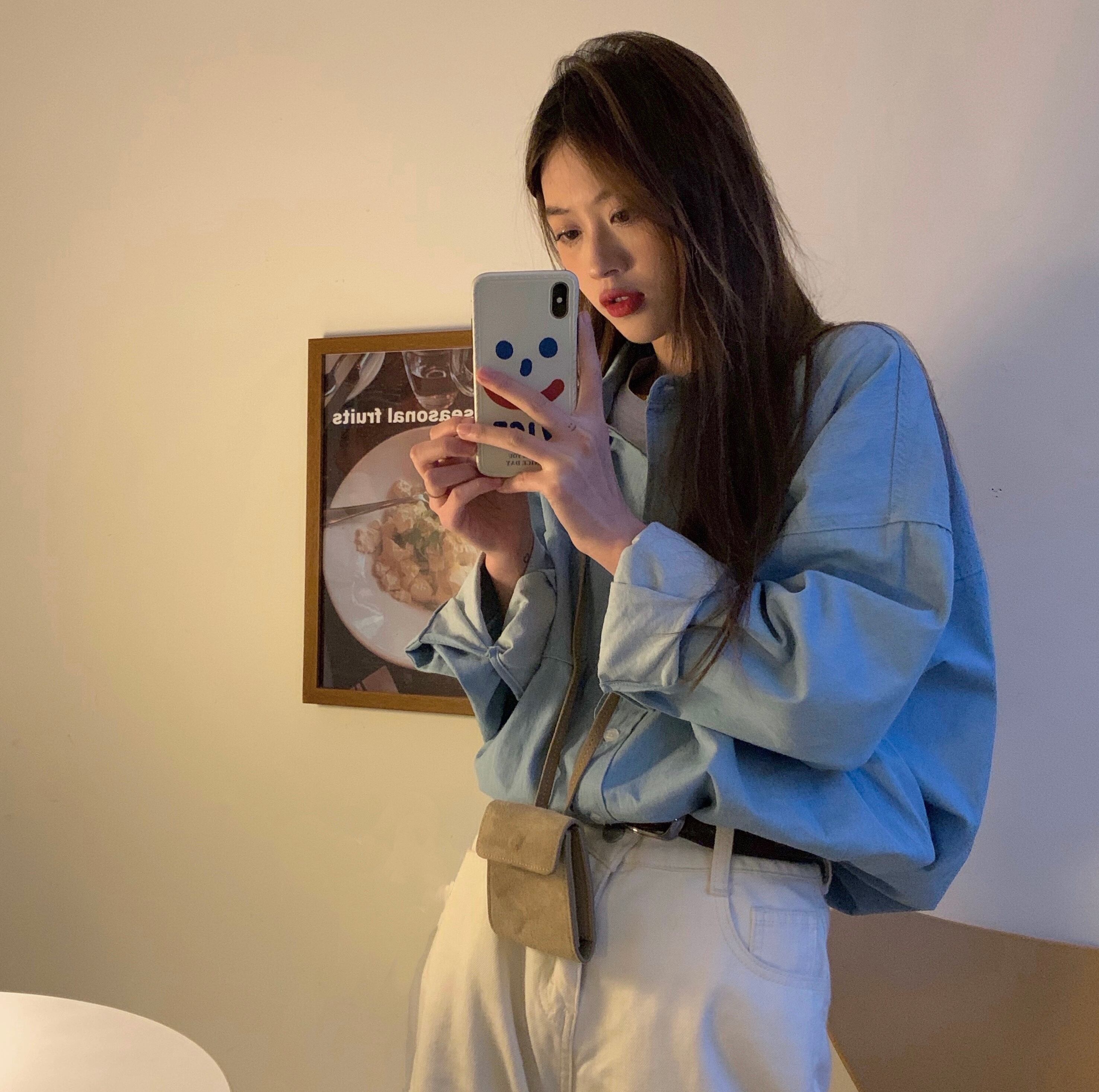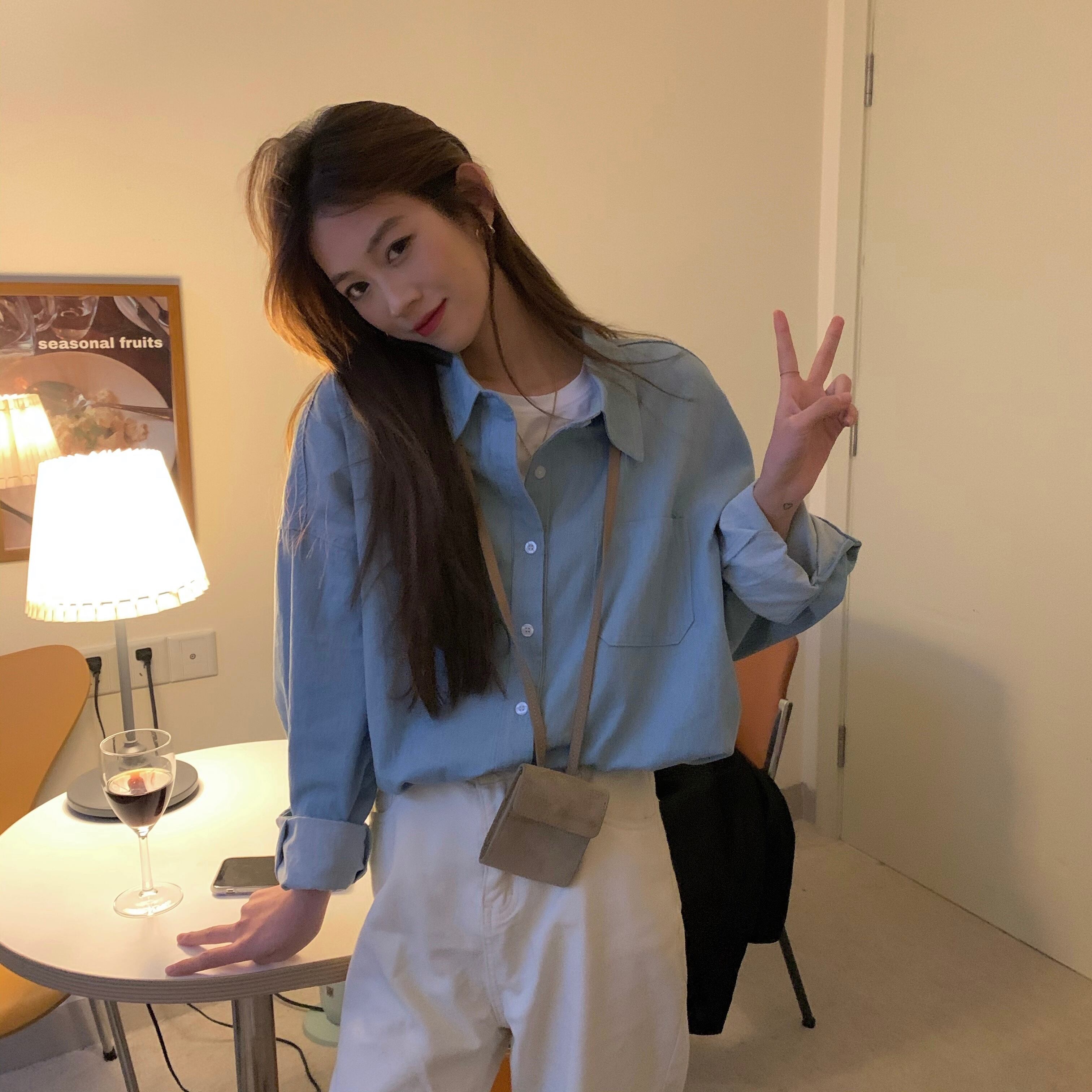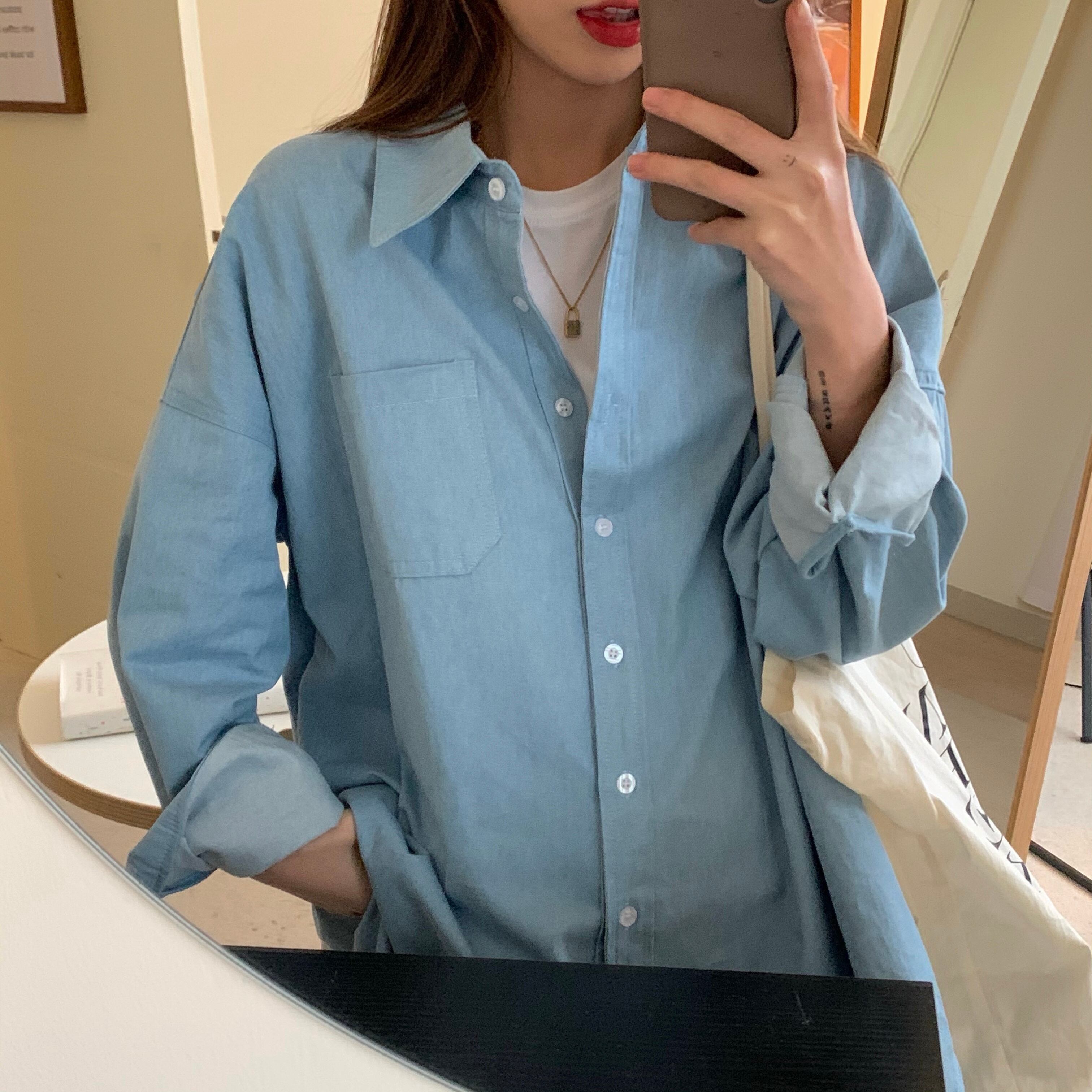 色:ライトブルーのデニムシャツ