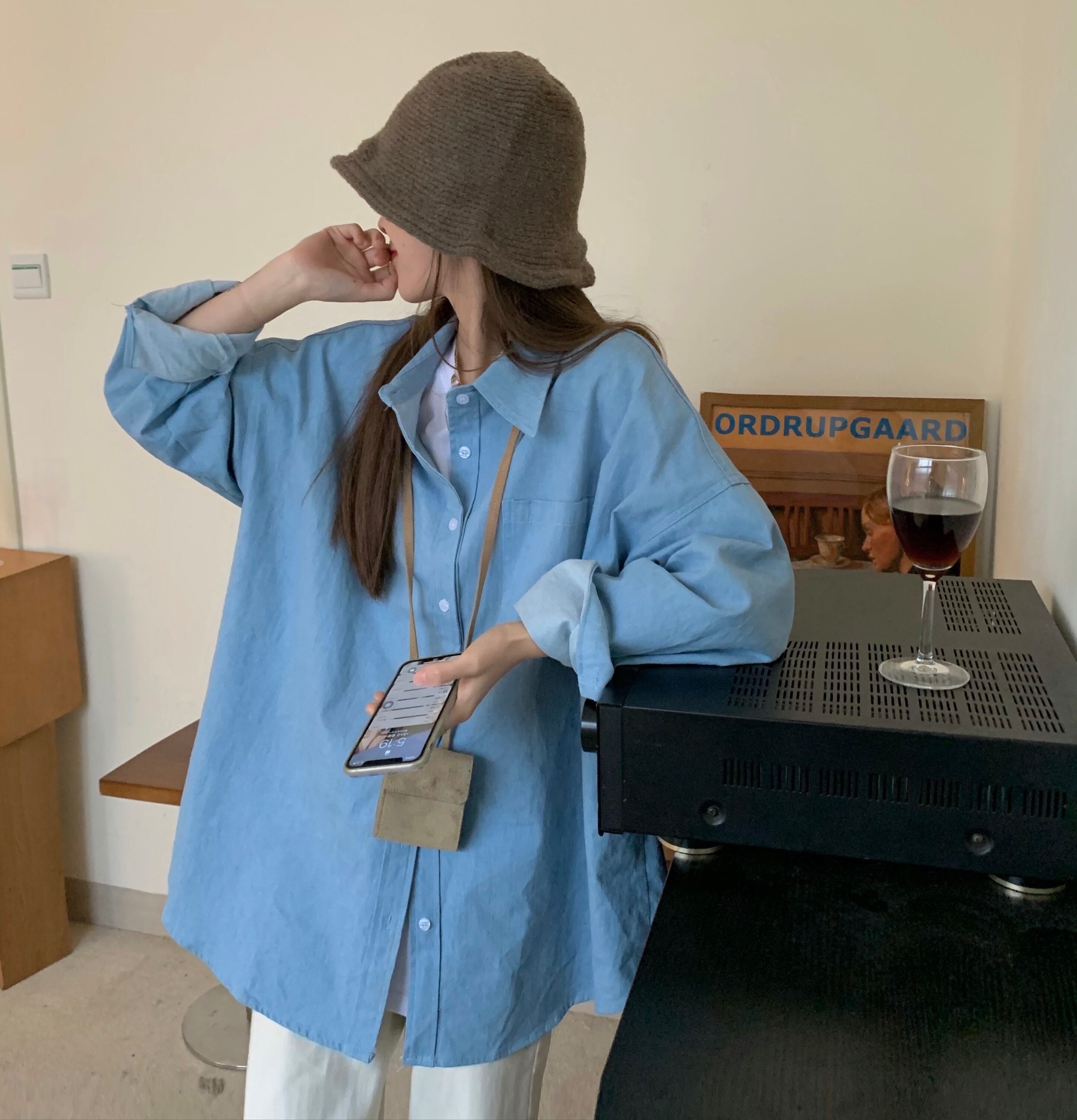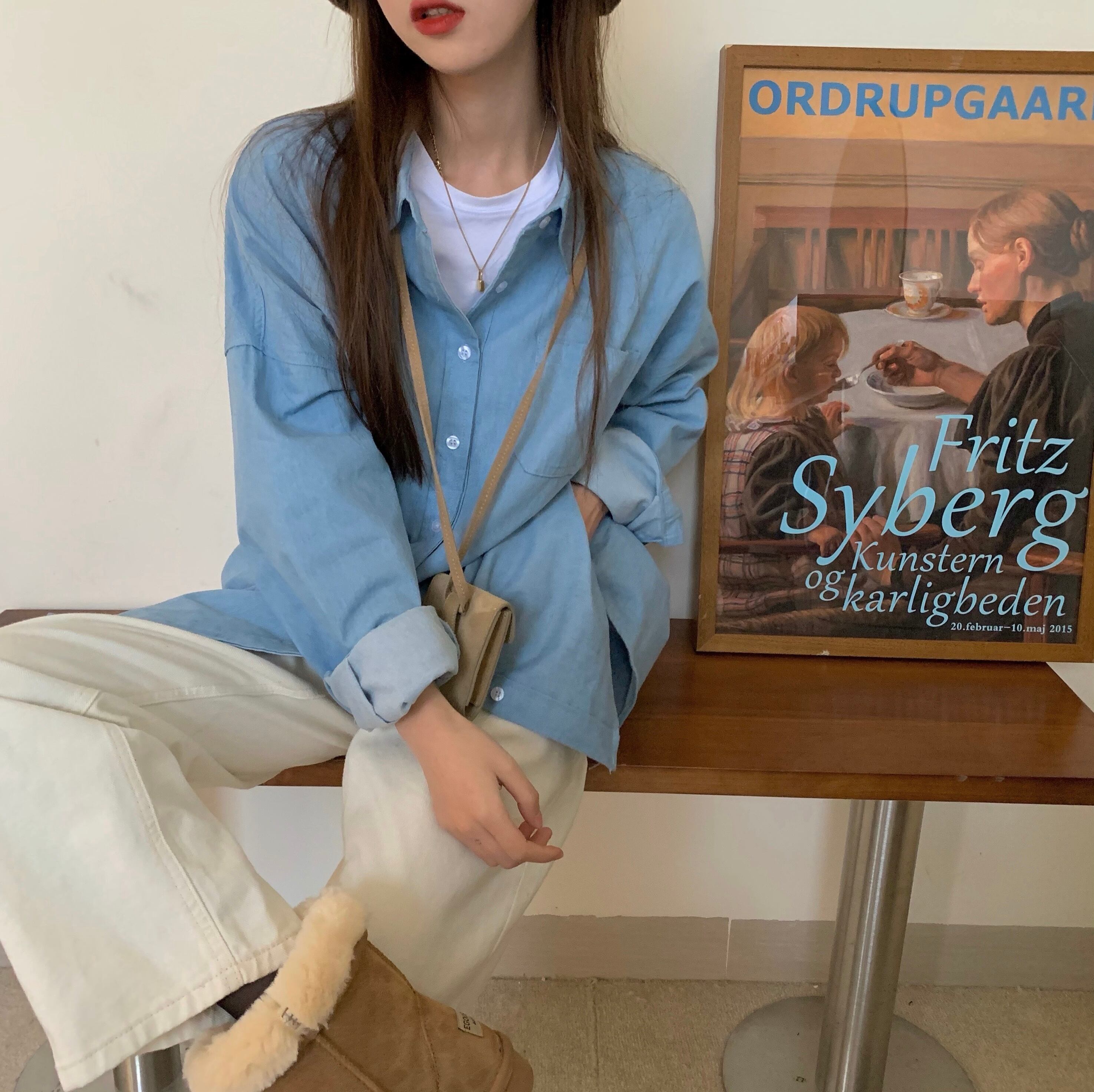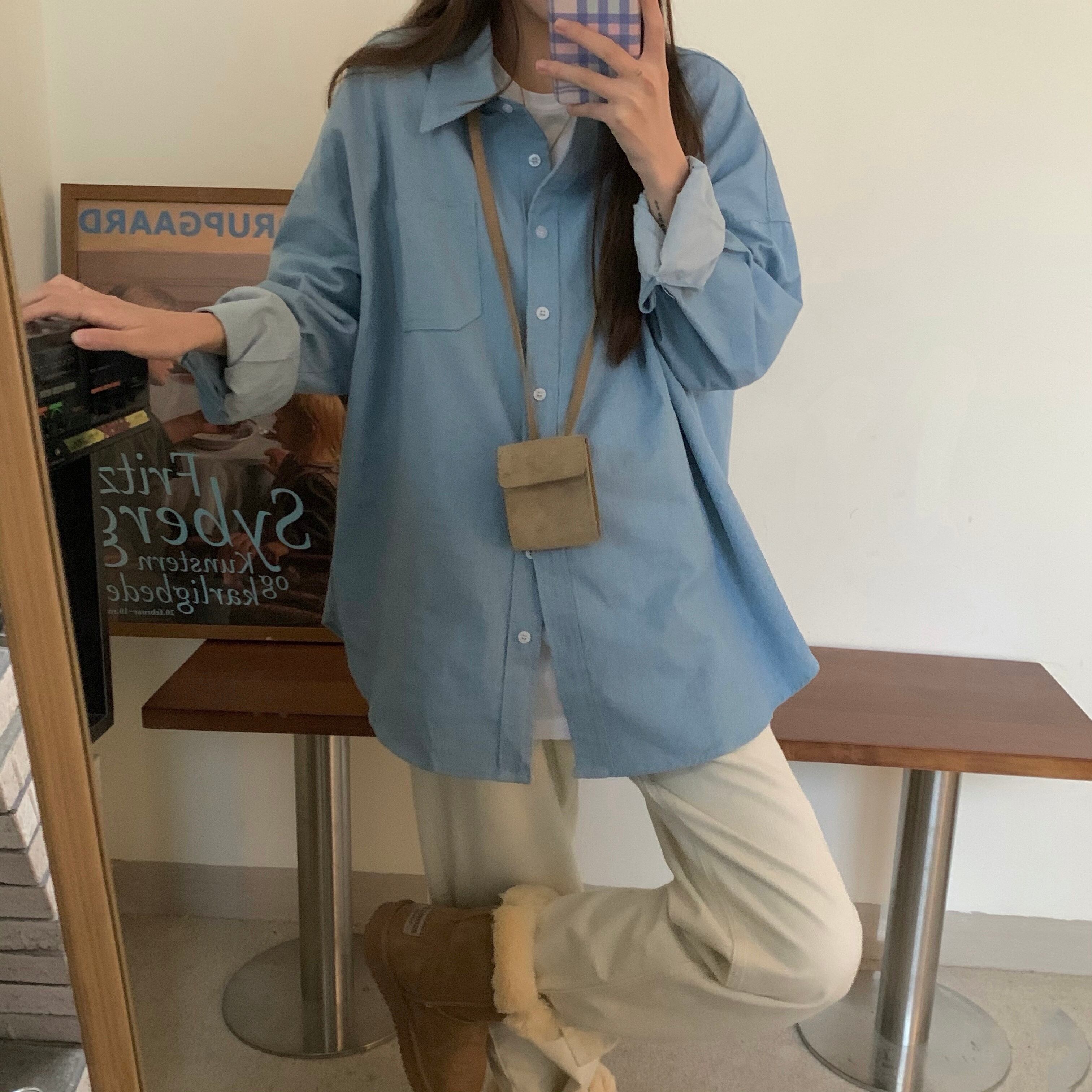色:ライトブルーのデニムシャツ