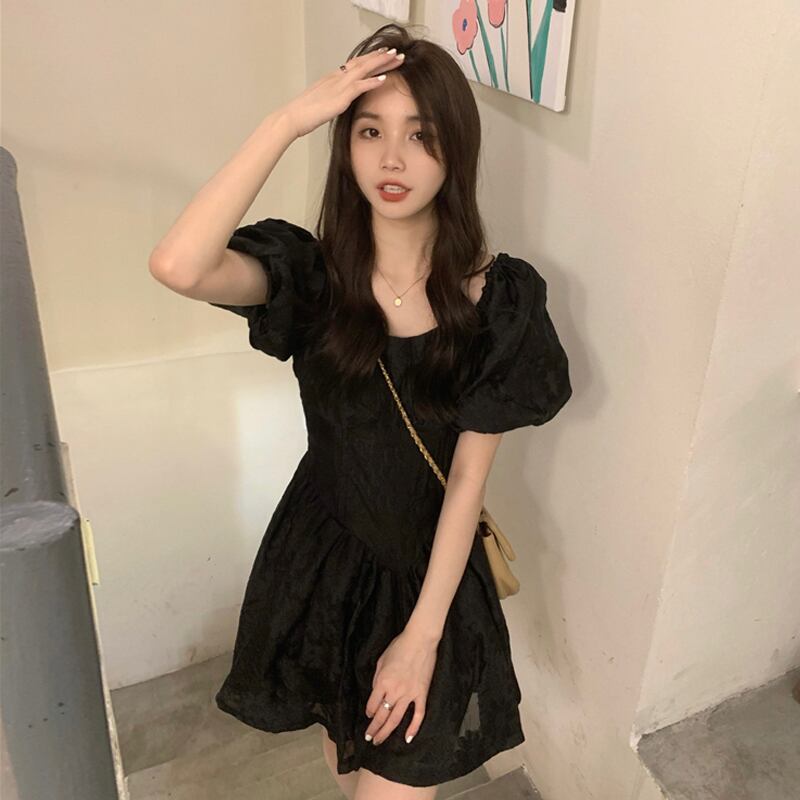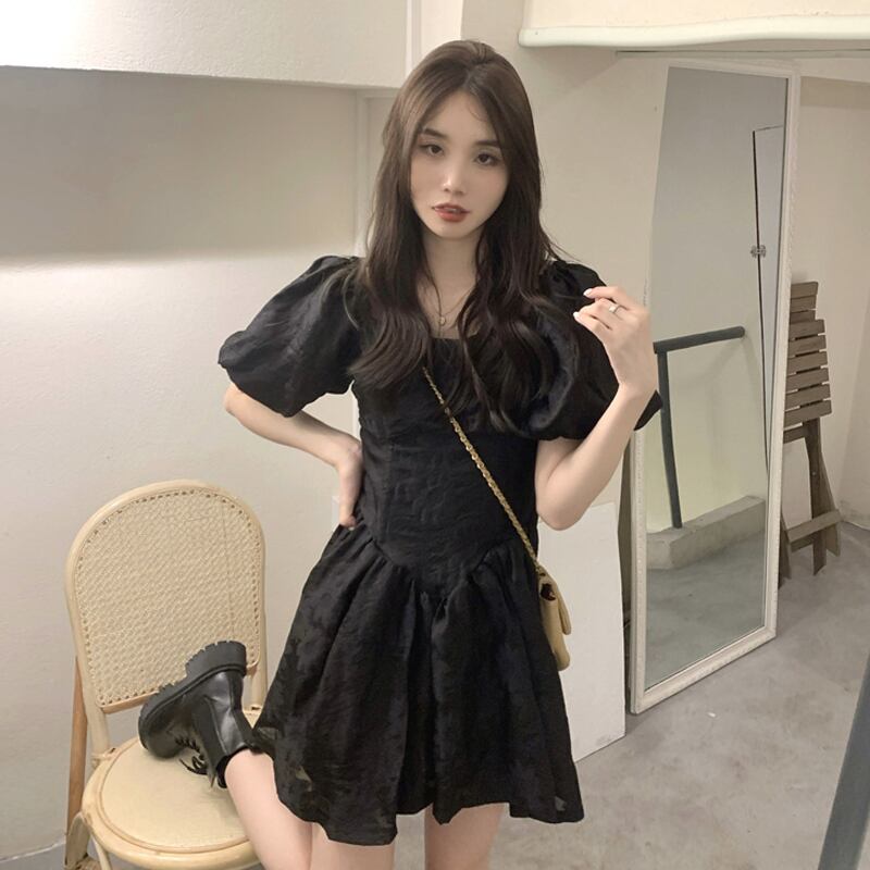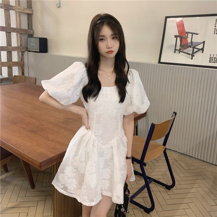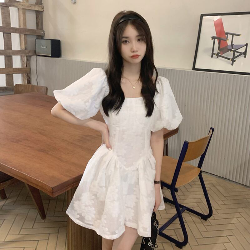 ホワイトウェストスリムワンピース夏服スカート 夏物 スクウェア パフスリーブ ウエスト SYJ89556770728