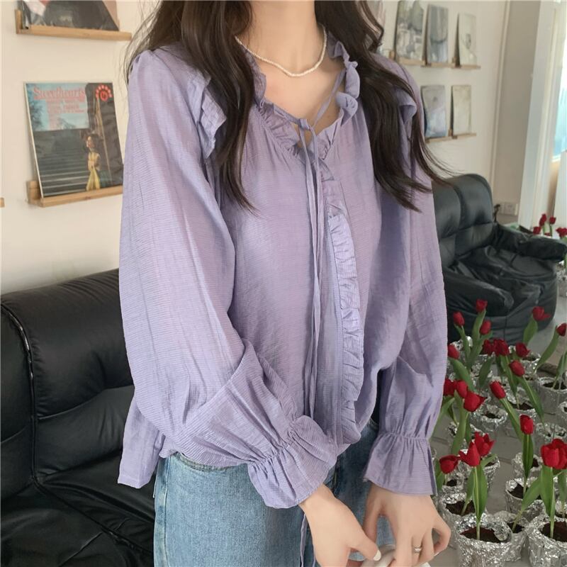 シャツ スプリングスタイルトップス ロング 春物 パープル 長袖 SYJ36733669281