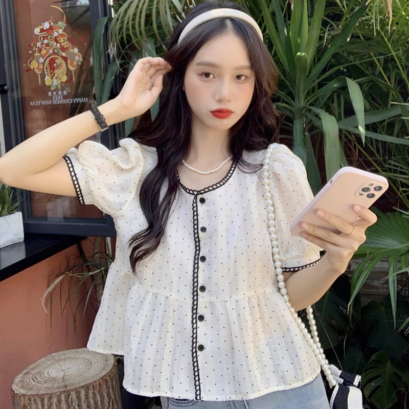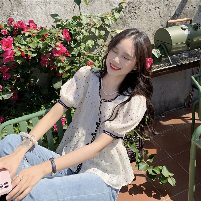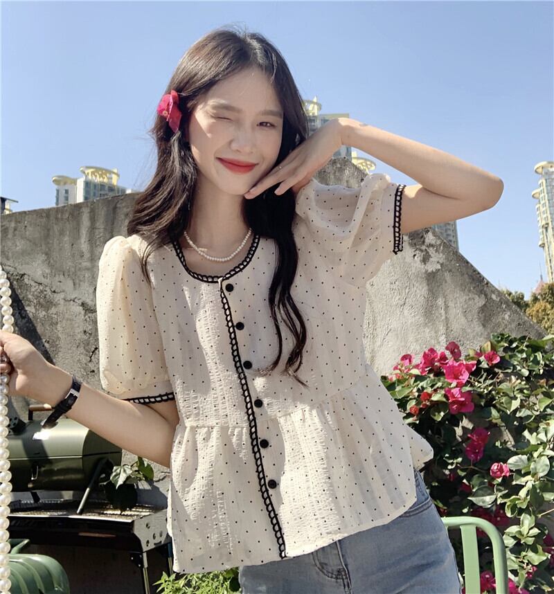 トップス 夏服水玉スリーブシャツ 大人ガーリー スウィート キュート カジュアル 夏物 SYJ7962685897