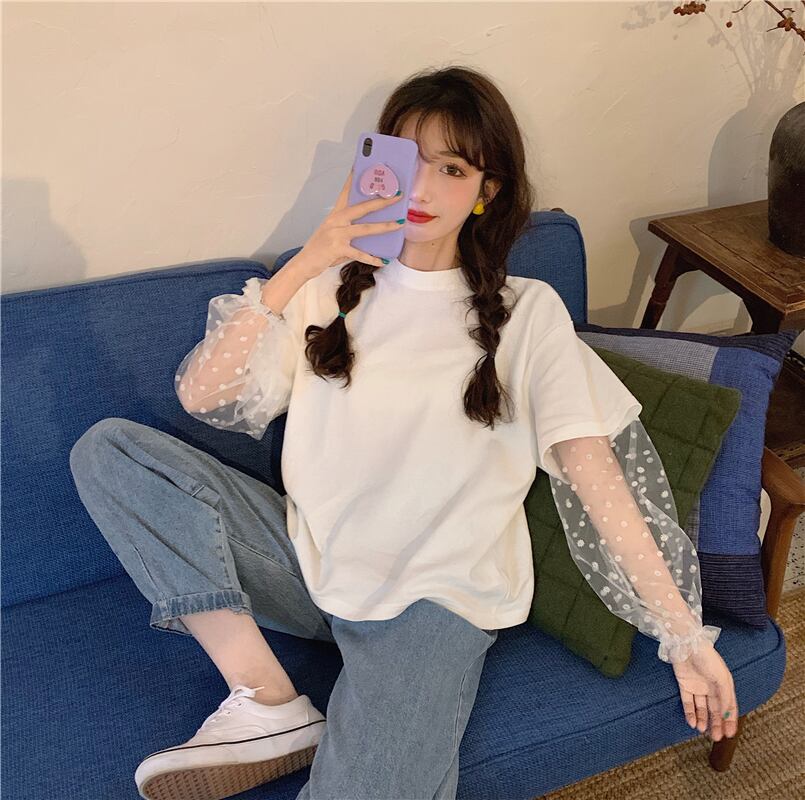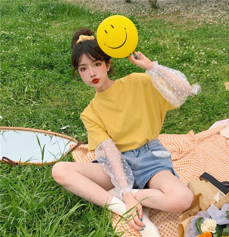 イエローTシャツ夏服ルーズトップス NEW ロング 夏物 長袖 SYJ54861126641