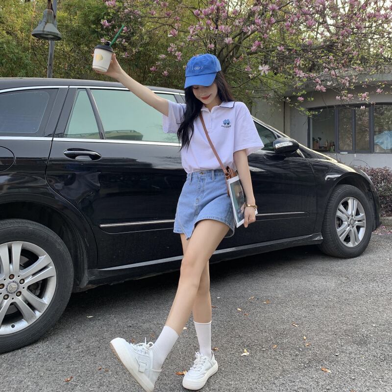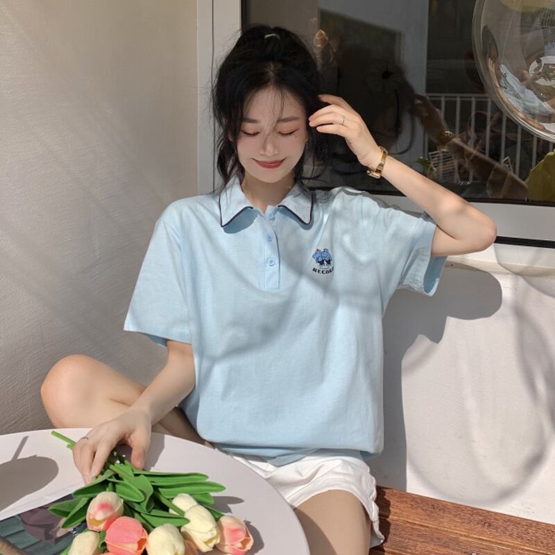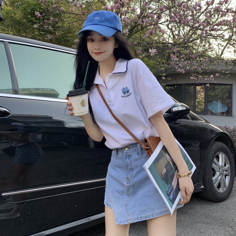 Tシャツ夏服ルーズホワイトカラートップス NEW コットン 夏物 SYJ2351002044