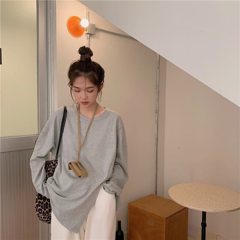 ホワイトスリットTシャツシャツ スプリングルーズゆったりトップス ロング 春物 長袖 SYJ53047545031