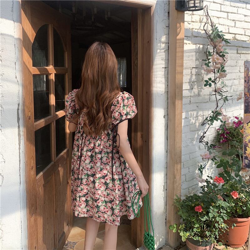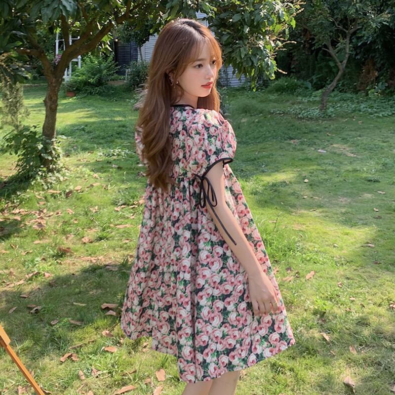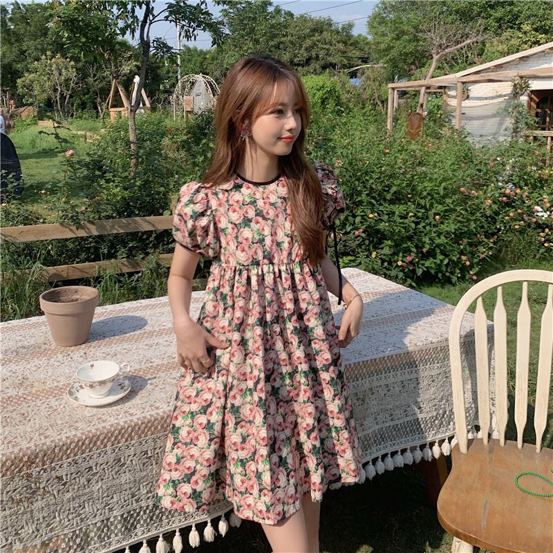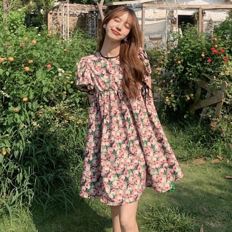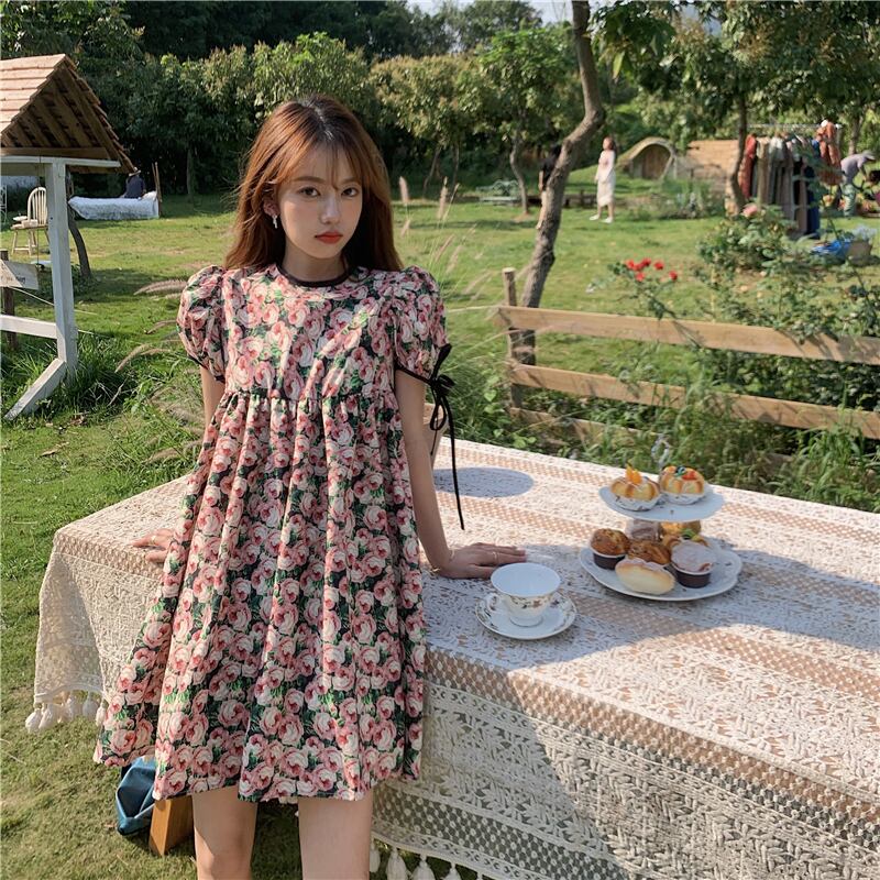 スリーブフローラルワンピース夏服スタイルショートスカート 大人ガーリー スウィート キュート カジュアル 夏物 花柄 SYJ71470409031