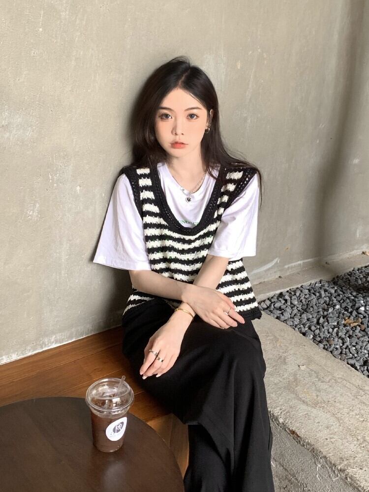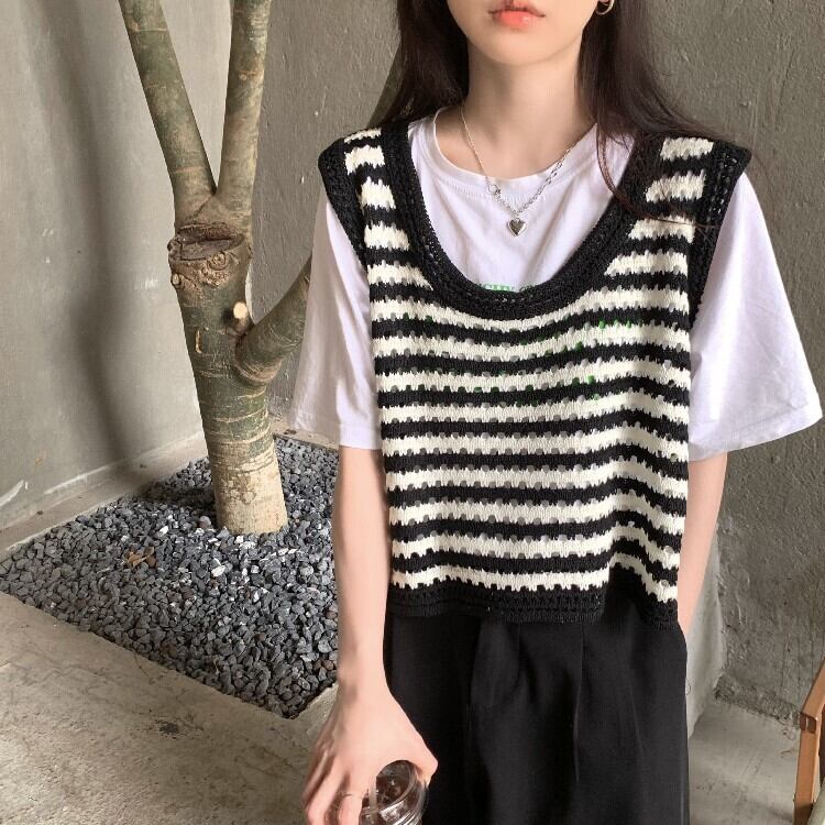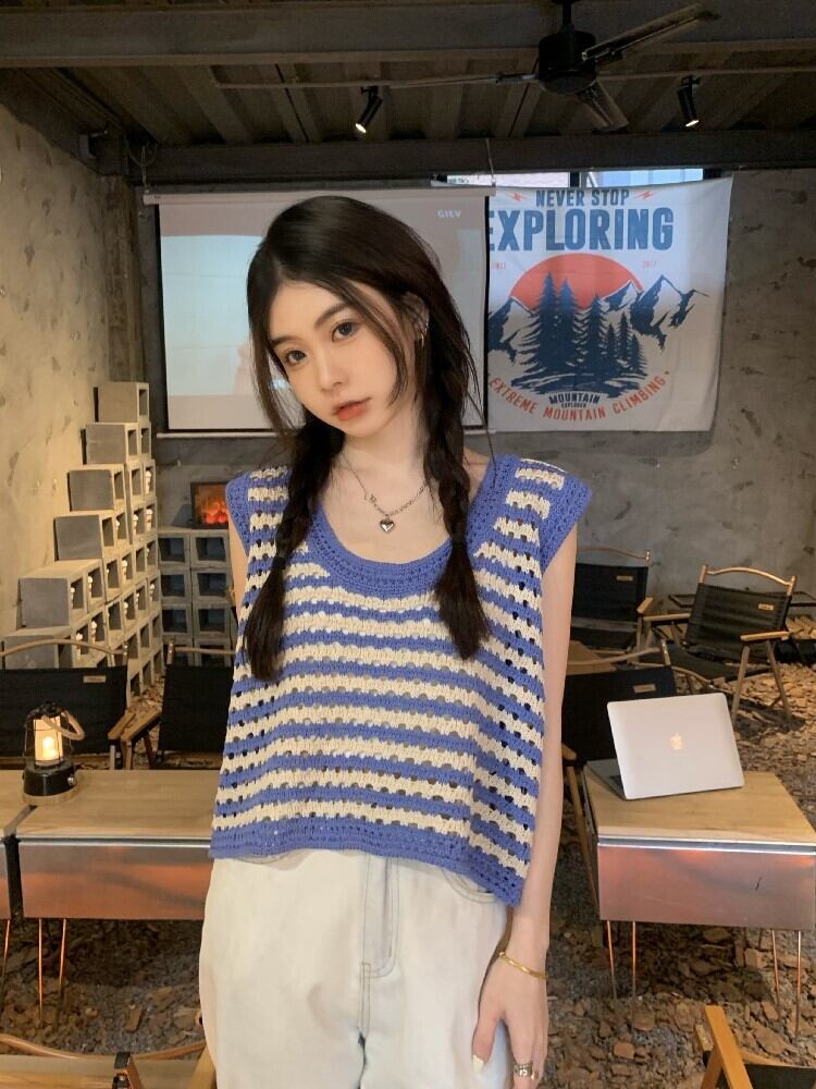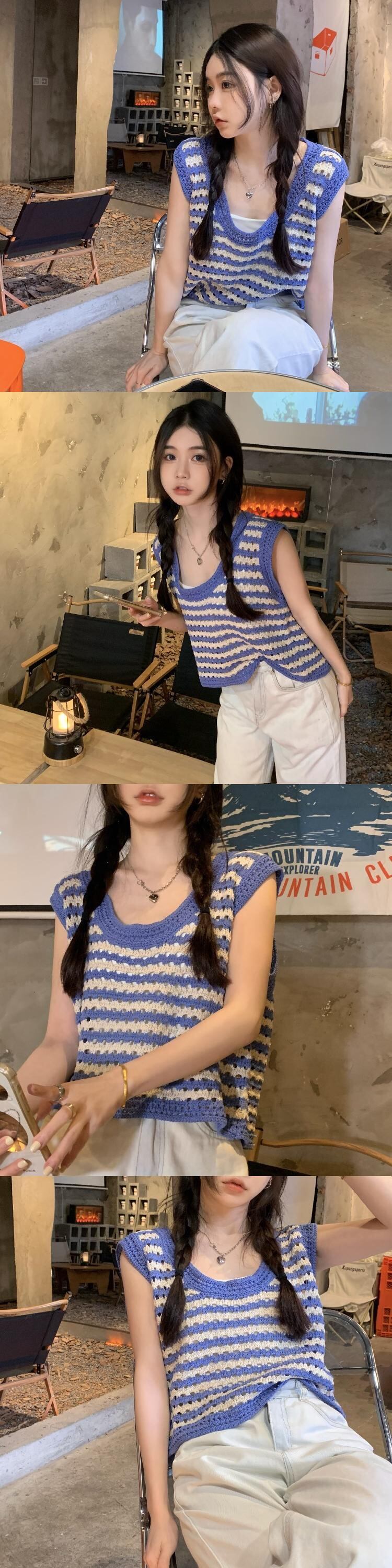 ストライプニット夏服ノースリーブトップス 夏物 SYJ64118527418