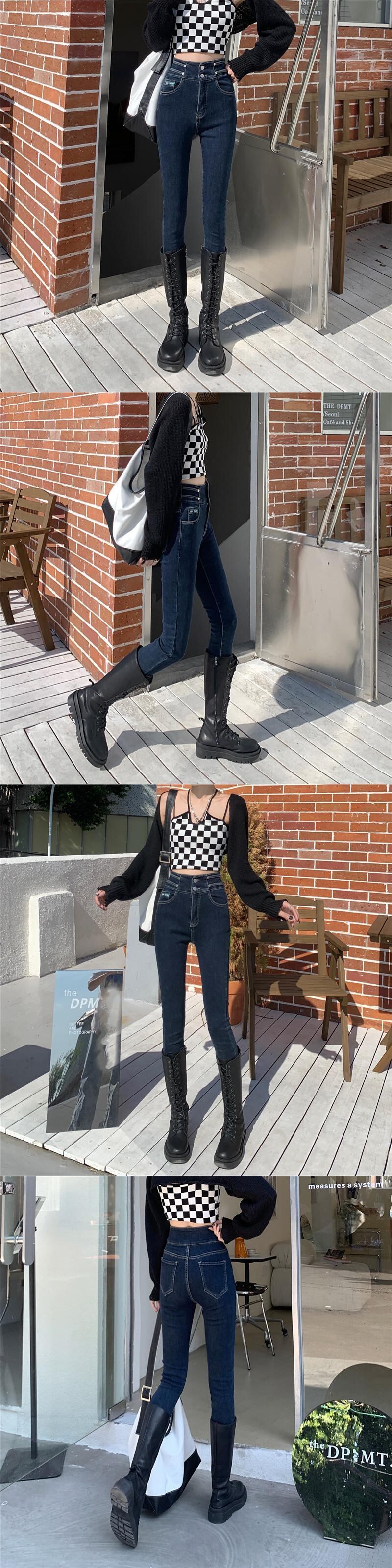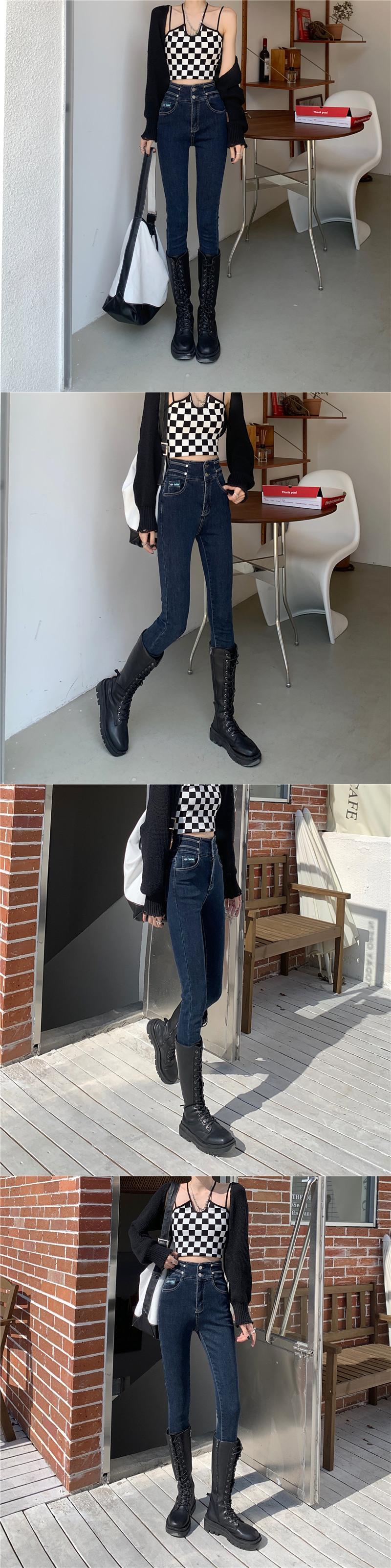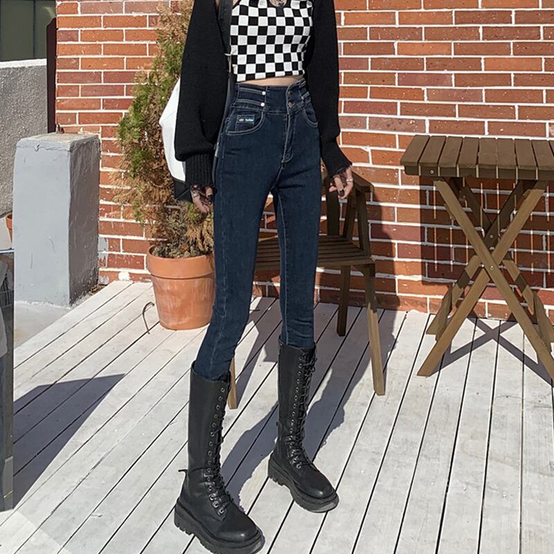 ブラックジーンズ スプリングハイウェストスリムパンツ 春物 ウエスト SYJ83459744349