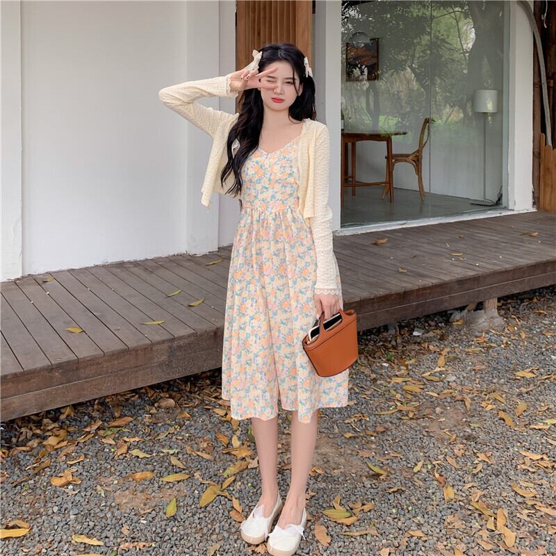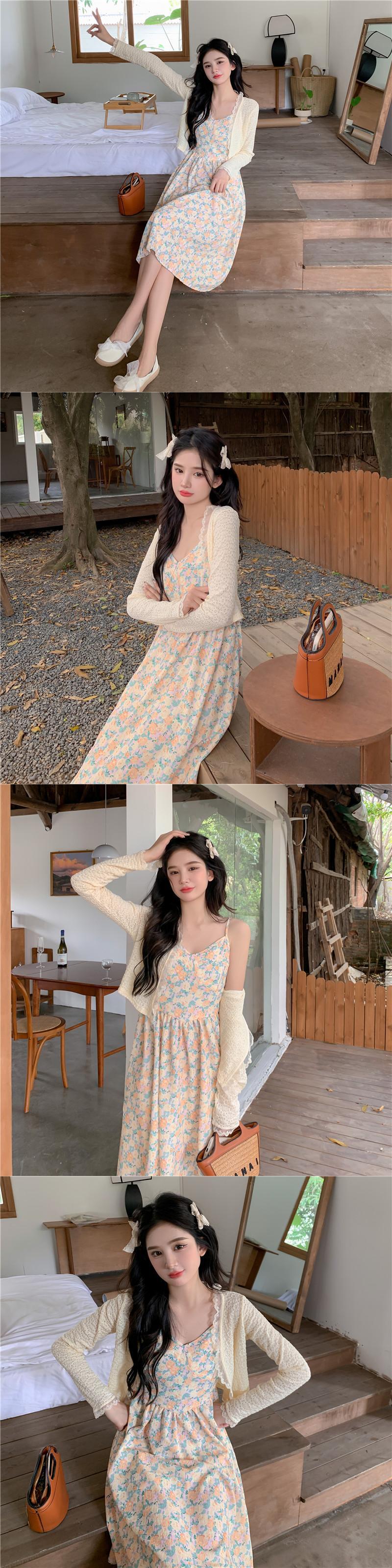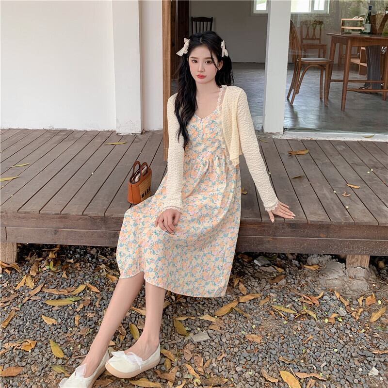 フローラルワンピーススプリングスタイルスカート 大人ガーリー スウィート キュート カジュアル 春物 花柄 ミドル丈 SYJ44509240047