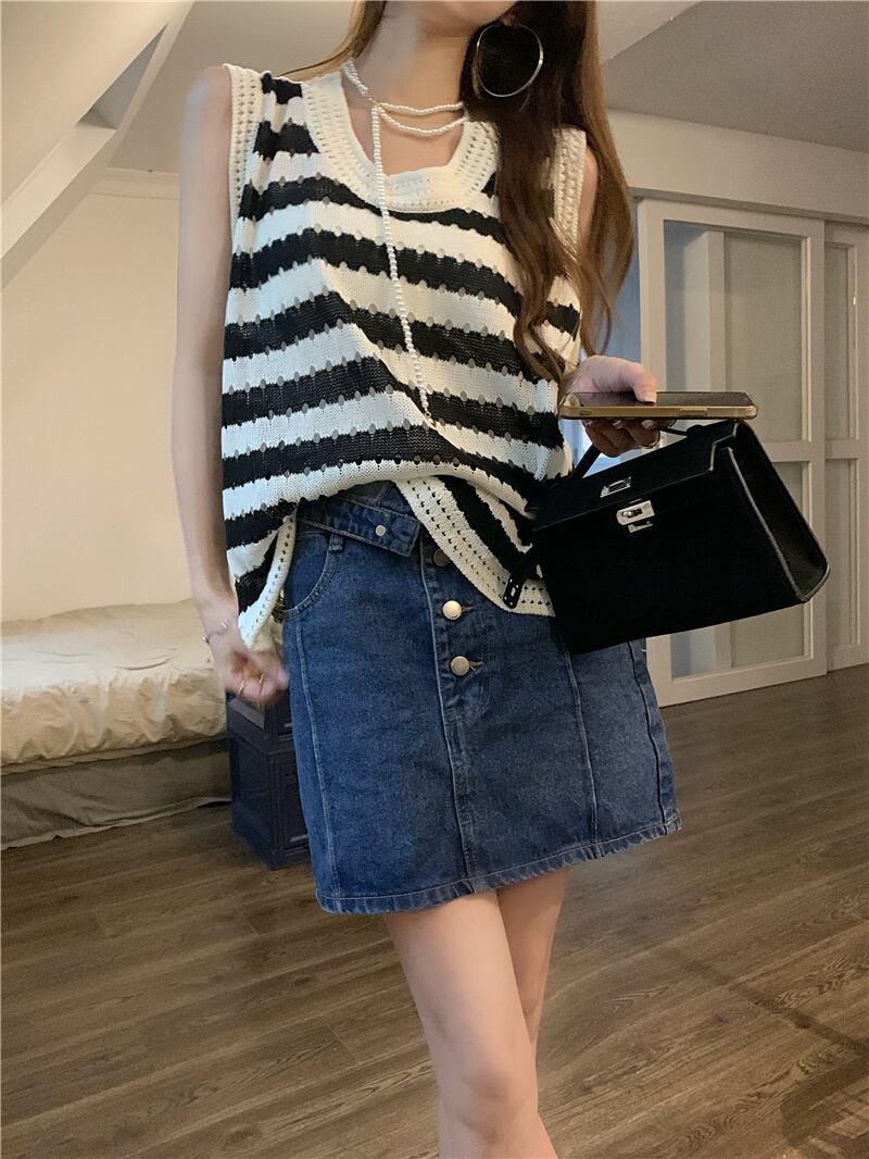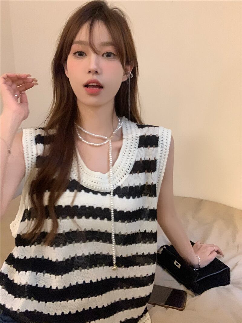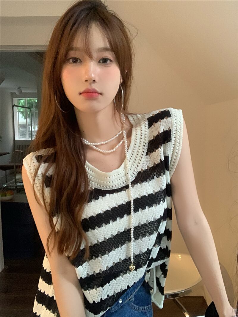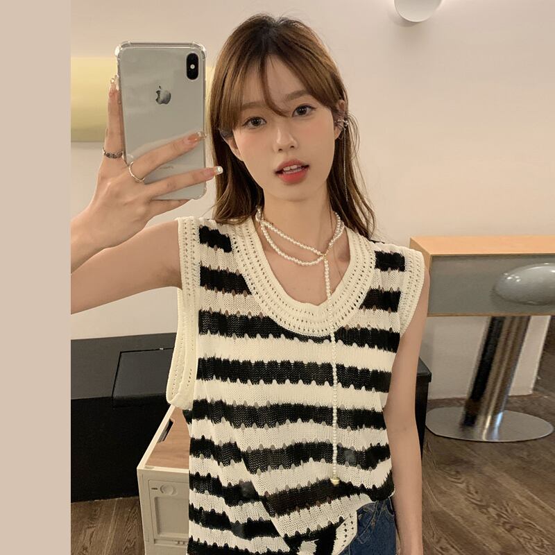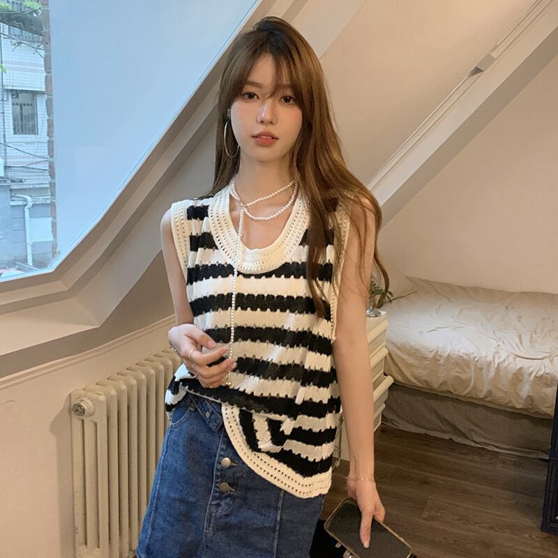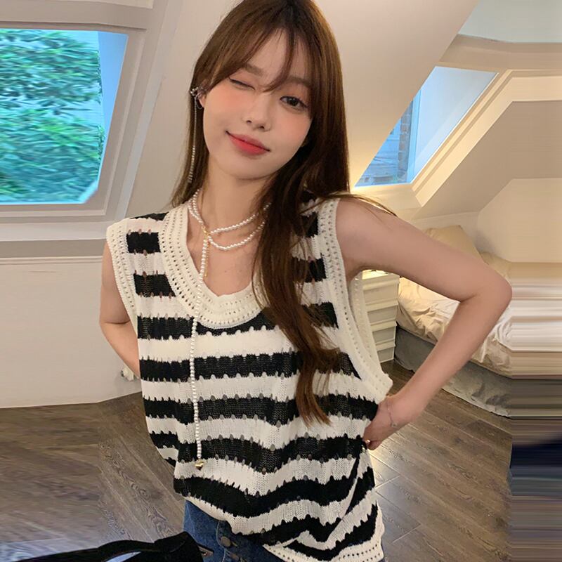 スタイルストライプ夏服セーター ノースリーブトップス 夏物 SYJ78912476460
