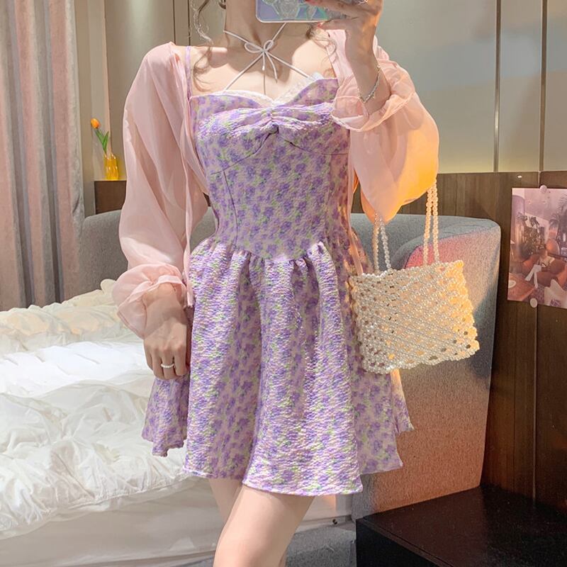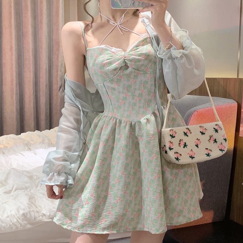 フローラルワンピースレディース夏服スタイルショートスカート 大人ガーリー スウィート キュート カジュアル 夏物 花柄 SYJ43300251921