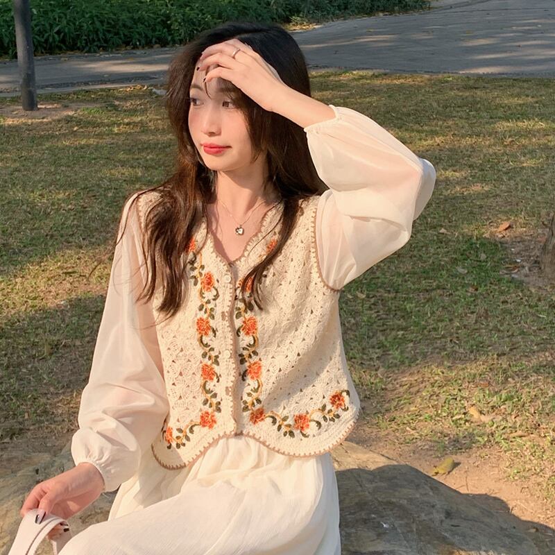 スタイルVネックシャツ スプリングトップス ロング 大人ガーリー スウィート キュート カジュアル 春物 長袖 SYJ46005325909