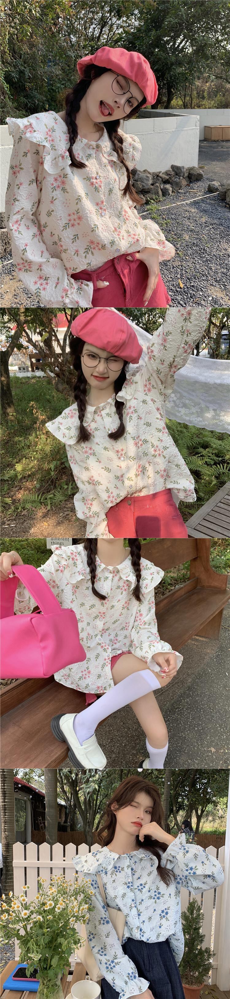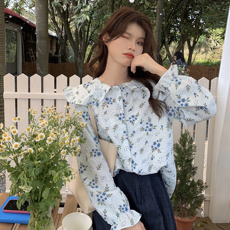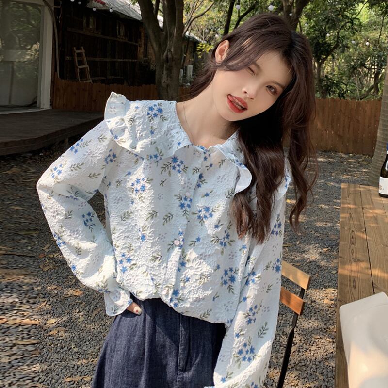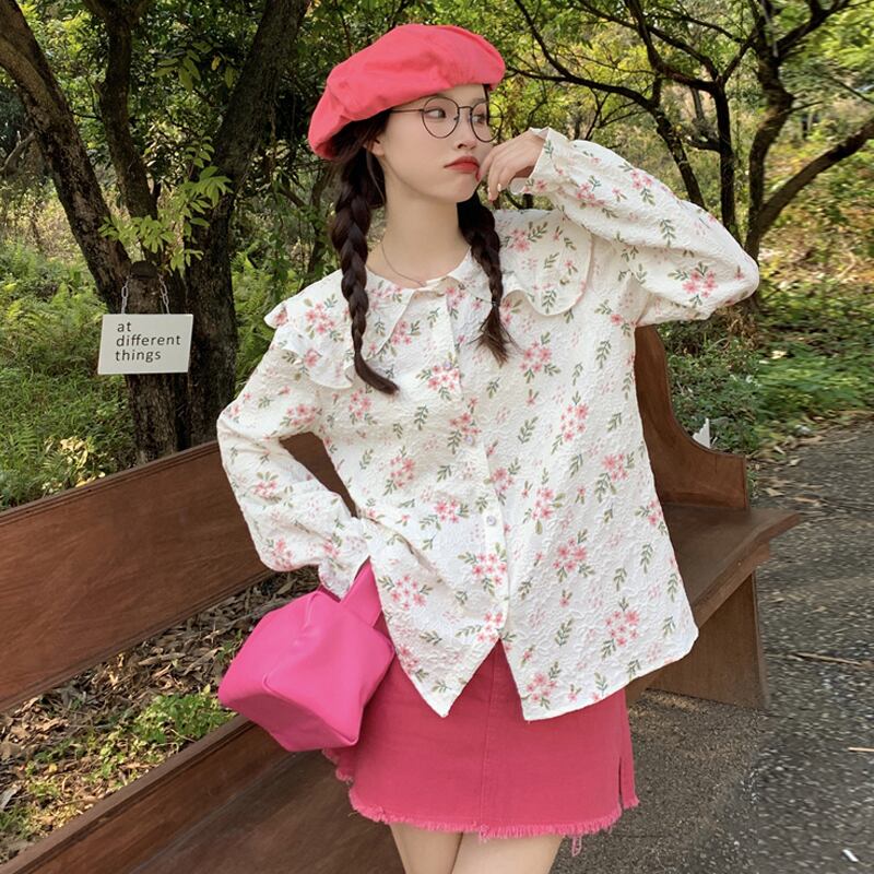 カラーフローラルシャツ スプリング秋物韓国ファッションスタイルトップス ロング 春物 オータム 花柄 長袖 SYJ24536738787